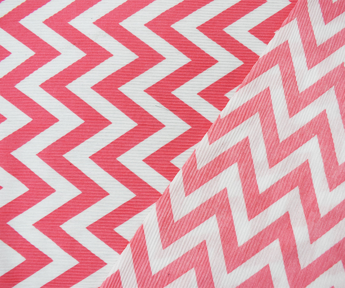 Pink-White Poly Stretch Spandex Chevron Print Pleated Jersey Knit Fabric