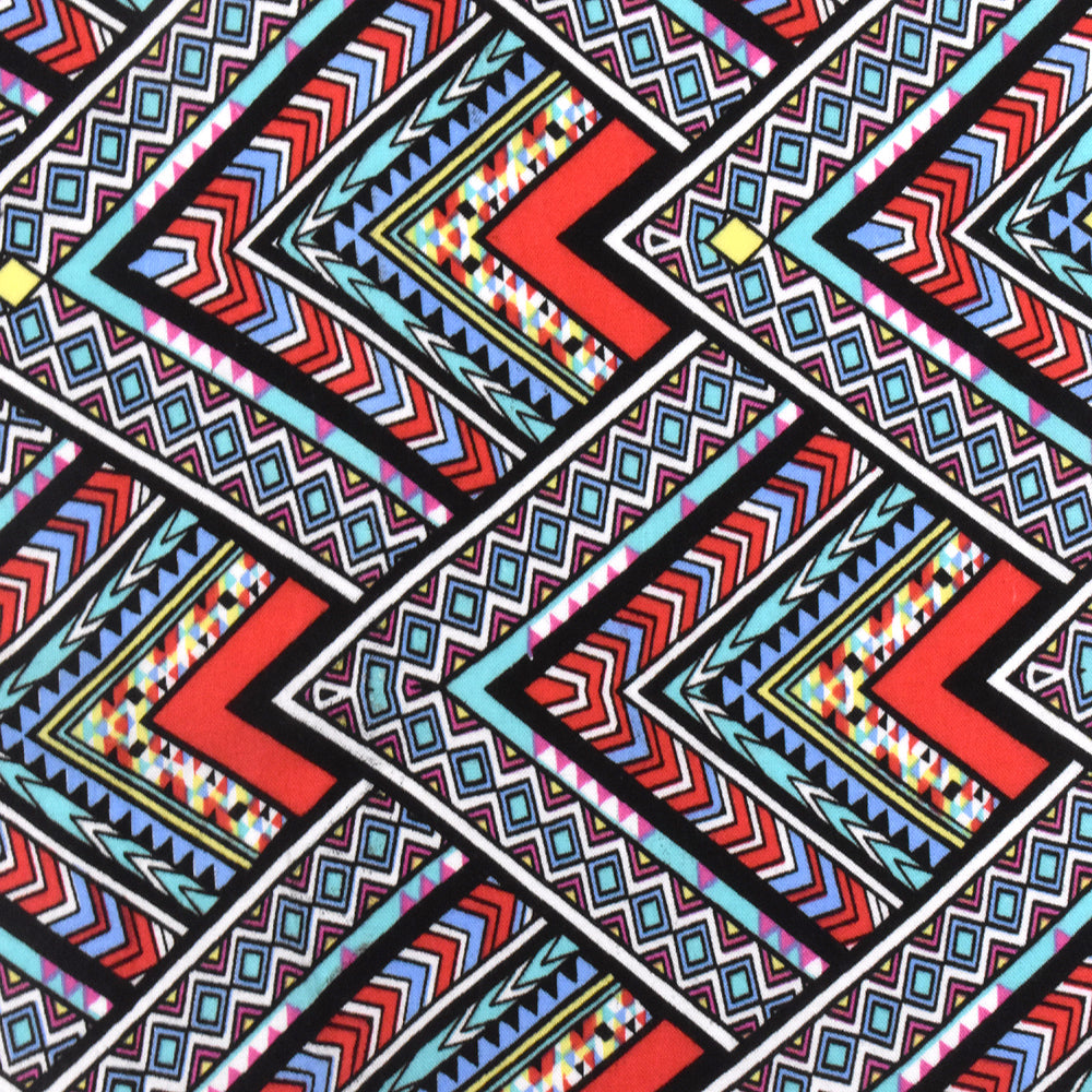 -100% rayon challis fabric printed with an abstract pattern using chevron and Aztec inspired elements
