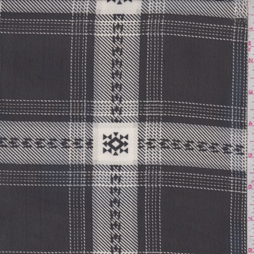 Black/Cream Southwest Plaid Crepe Chiffon Fabric