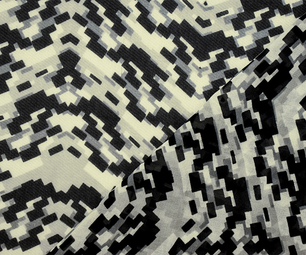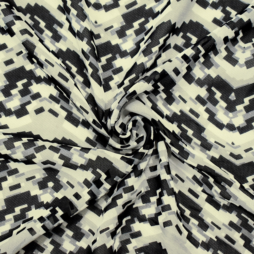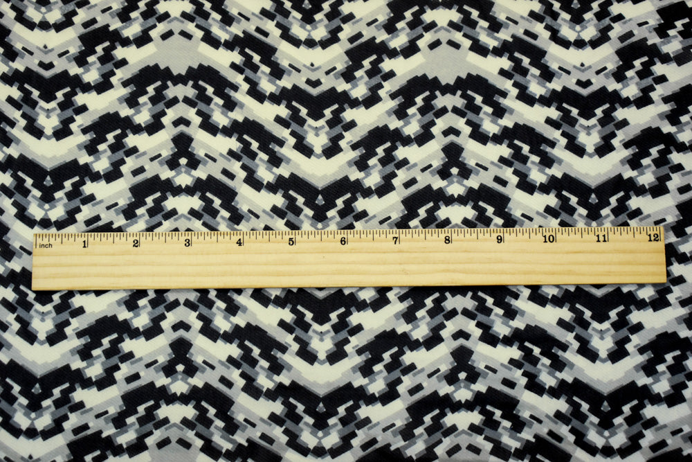 Black-Gray-Ivory Poly Abstract Pixel Chevron Printed Chiffon Woven Fabric
