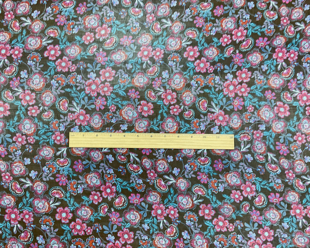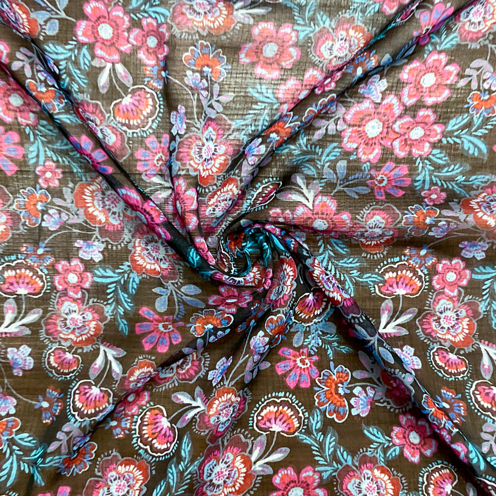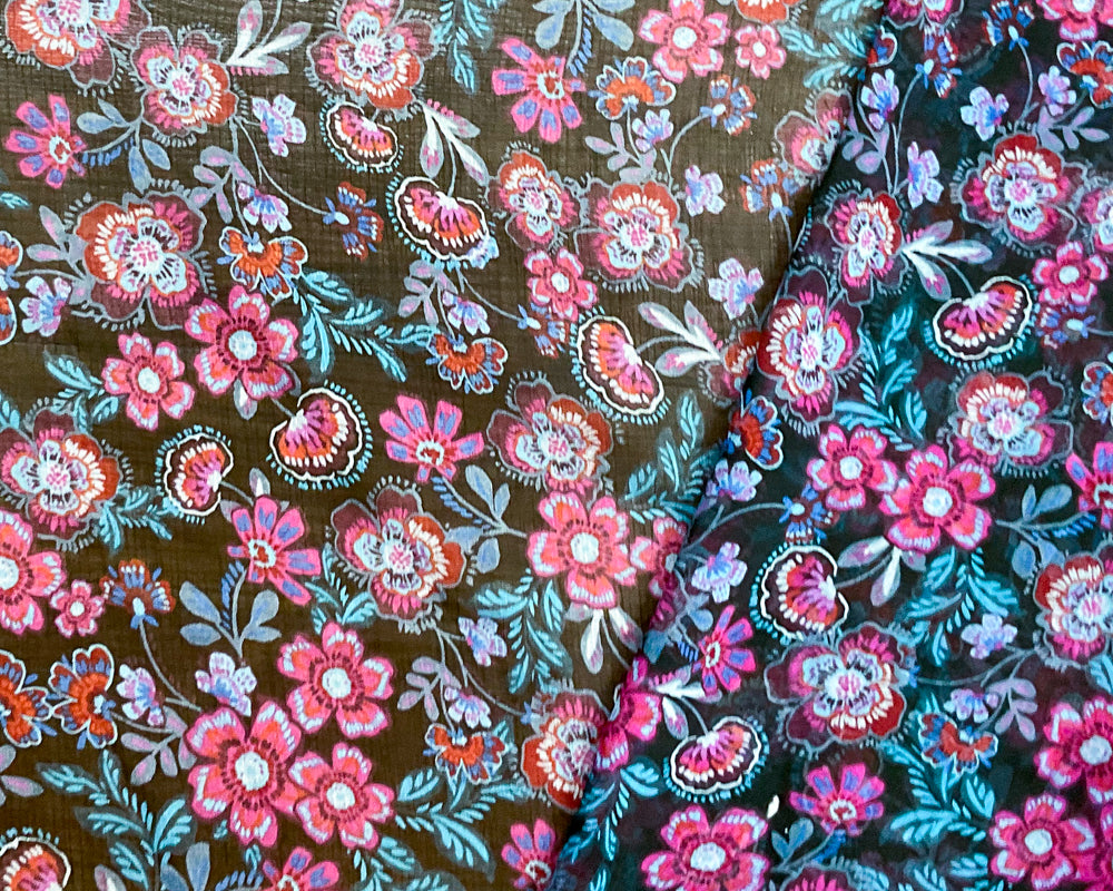 Black-Purple-Multi Poly Floral Printed Crinkle Yoryu Chiffon Woven Fabric