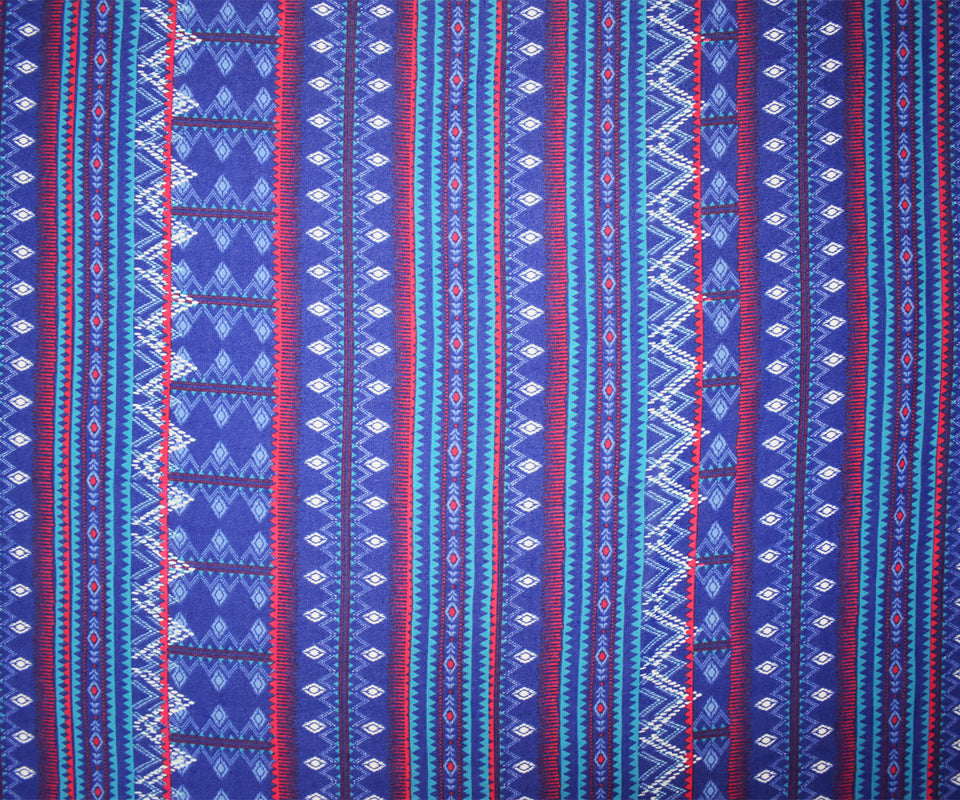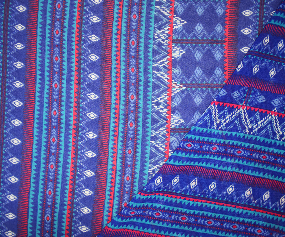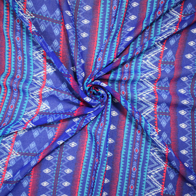 Blue-Multi Poly Aztec Stripe Printed Pebble Chiffon Woven Fabric