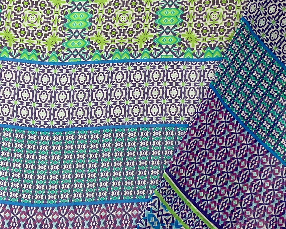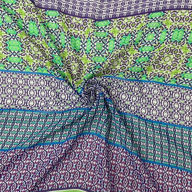 Blue-Purple-Multi Poly Moroccan Printed Chiffon Woven Fabric