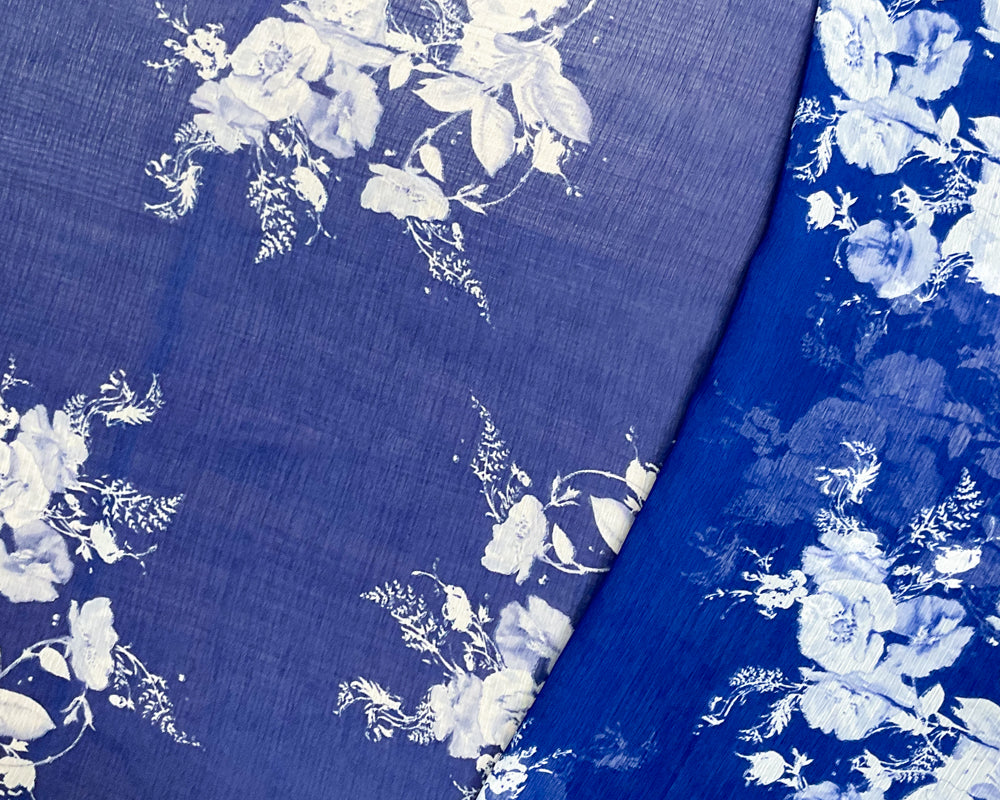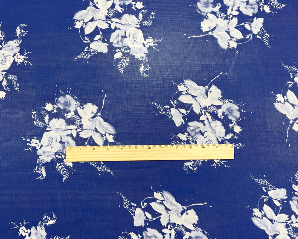 Blue-White Poly Floral Printed Chiffon Woven Fabric