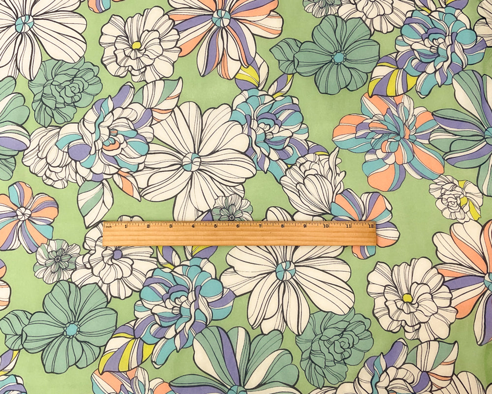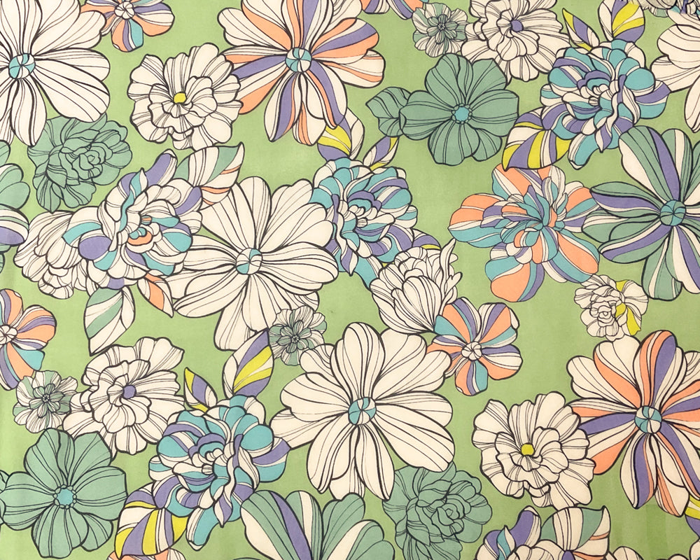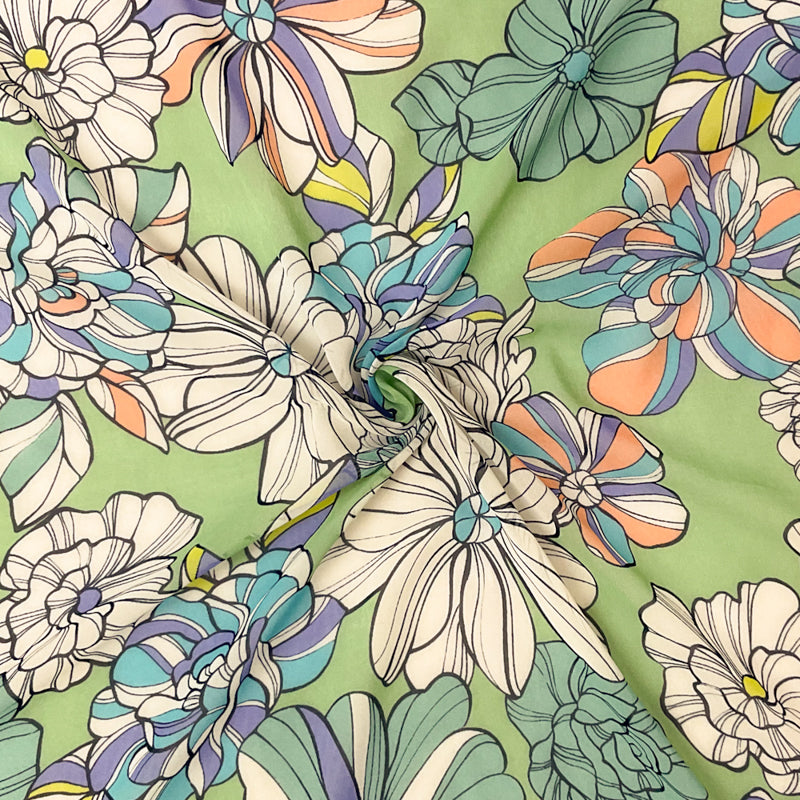 Green-Blue-Multi Poly Floral Printed Chiffon Woven Fabric