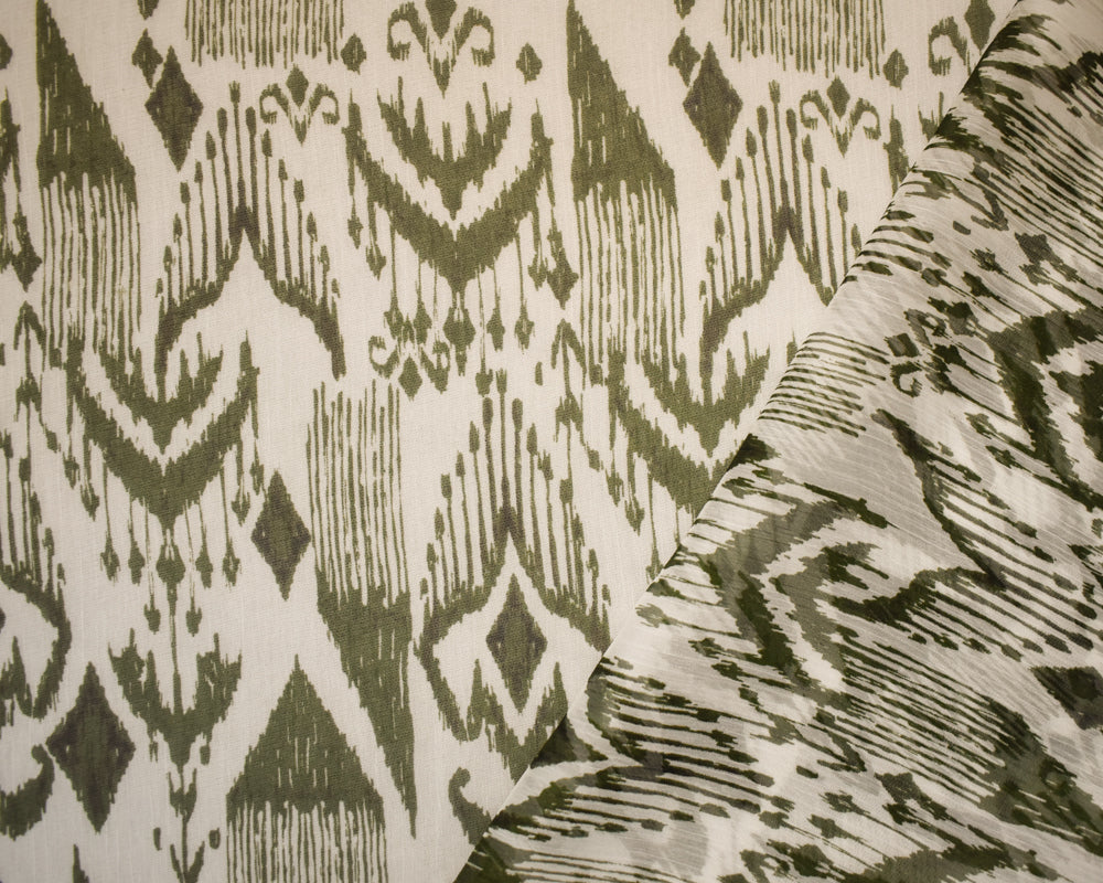 Green-White Poly Aztec Printed Crinkle Yoryu Chiffon Woven Fabric