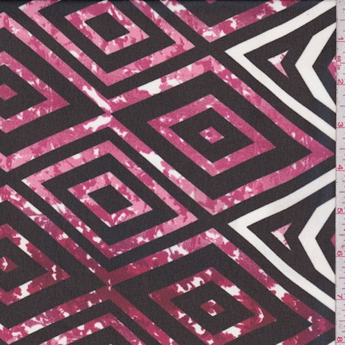 Pink/Burgundy/Black Diamond Chiffon Fabric