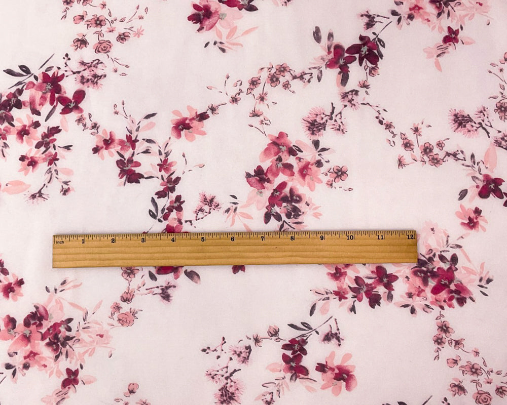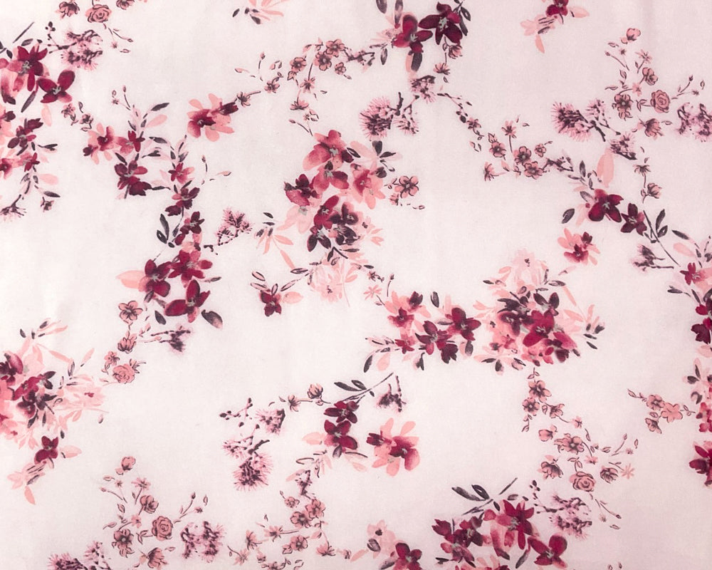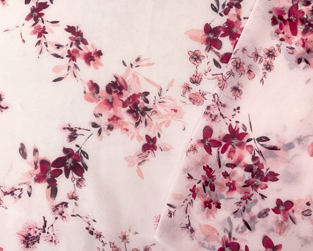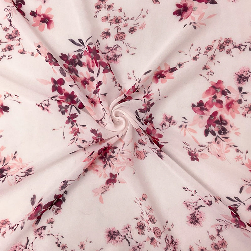 -Pink-Red-Green Poly Floral Printed Chiffon Woven Fabric