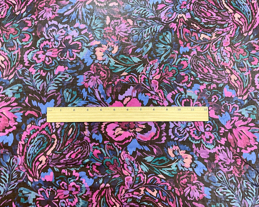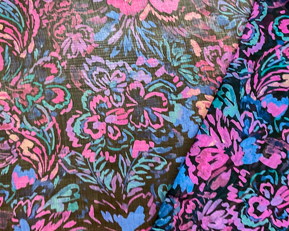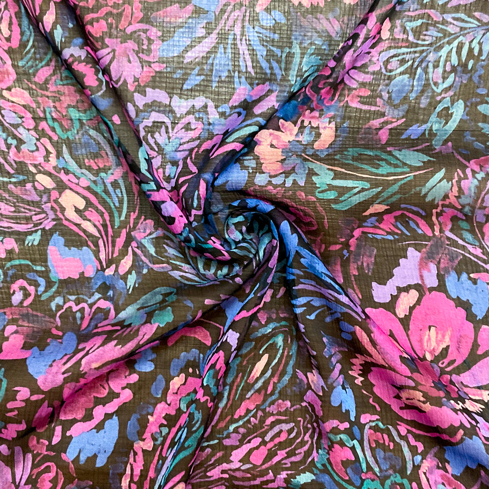 -Purple-Black-Multi Poly Ink Floral Printed Crinkle Yoryu Chiffon Woven Fabric