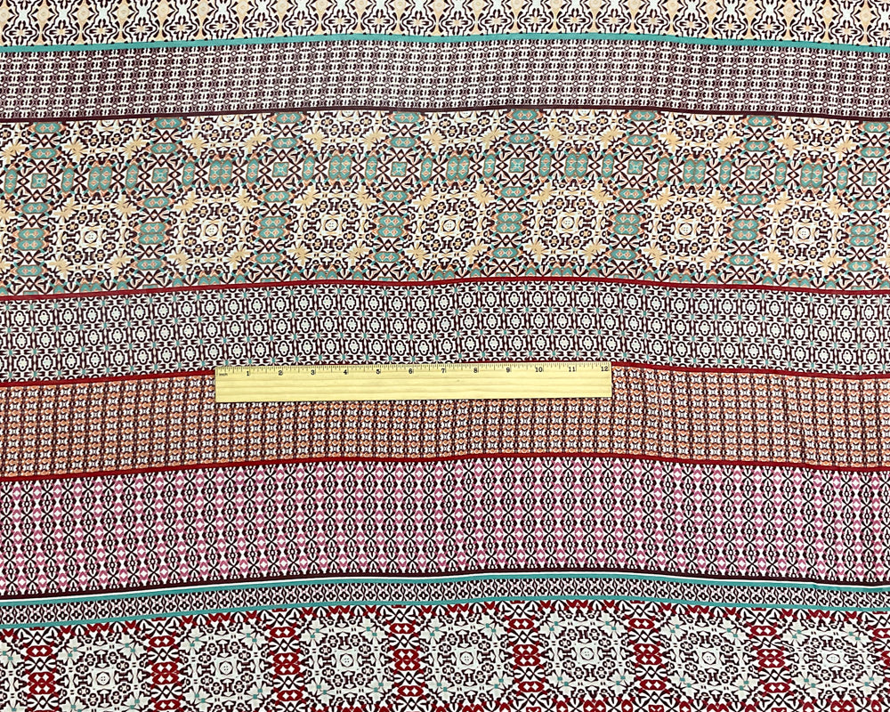 -Red-Pink-Multi Poly Stripe Aztec Printed Chiffon Woven Fabric