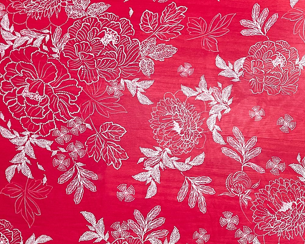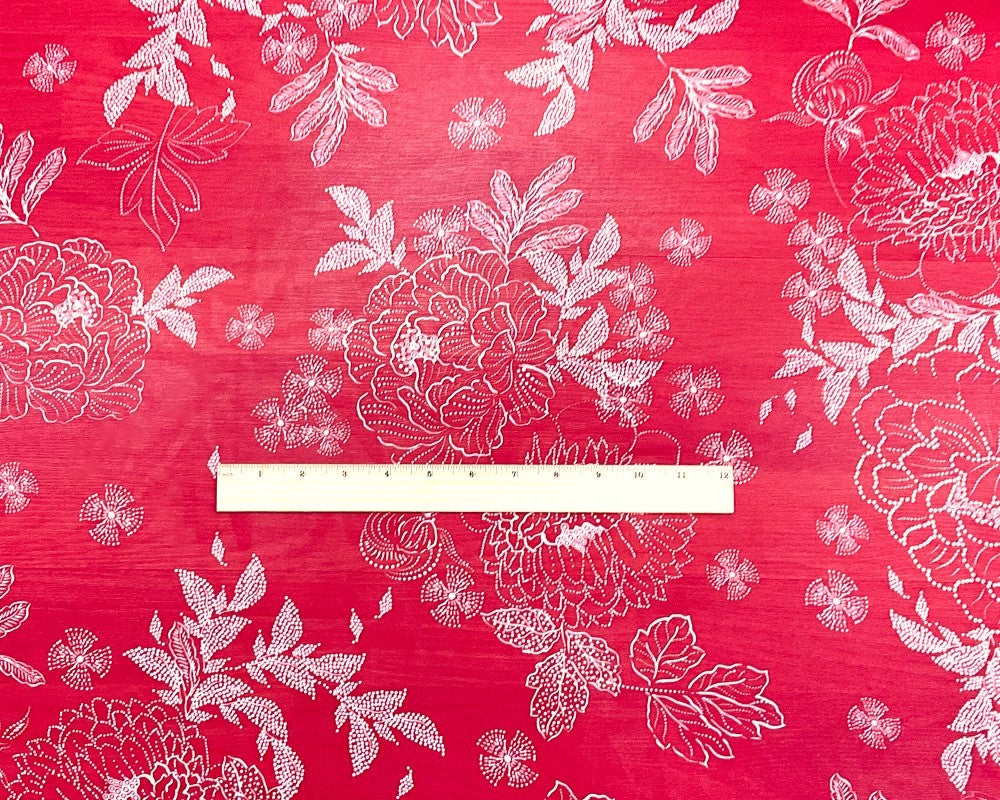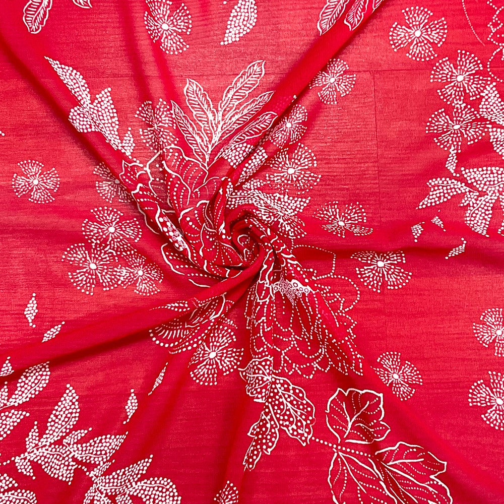 -Red-White Poly Floral Printed Chiffon Woven Fabric