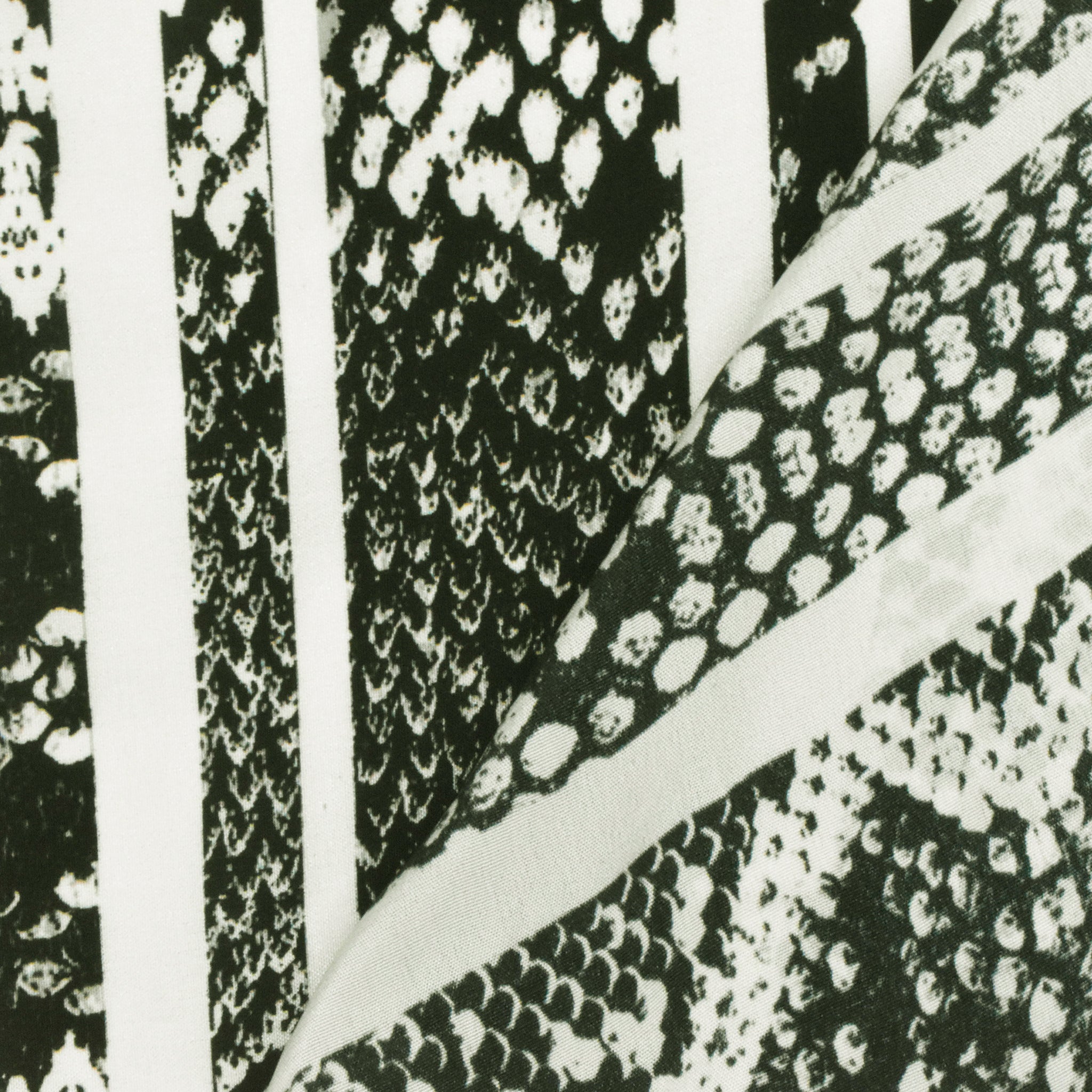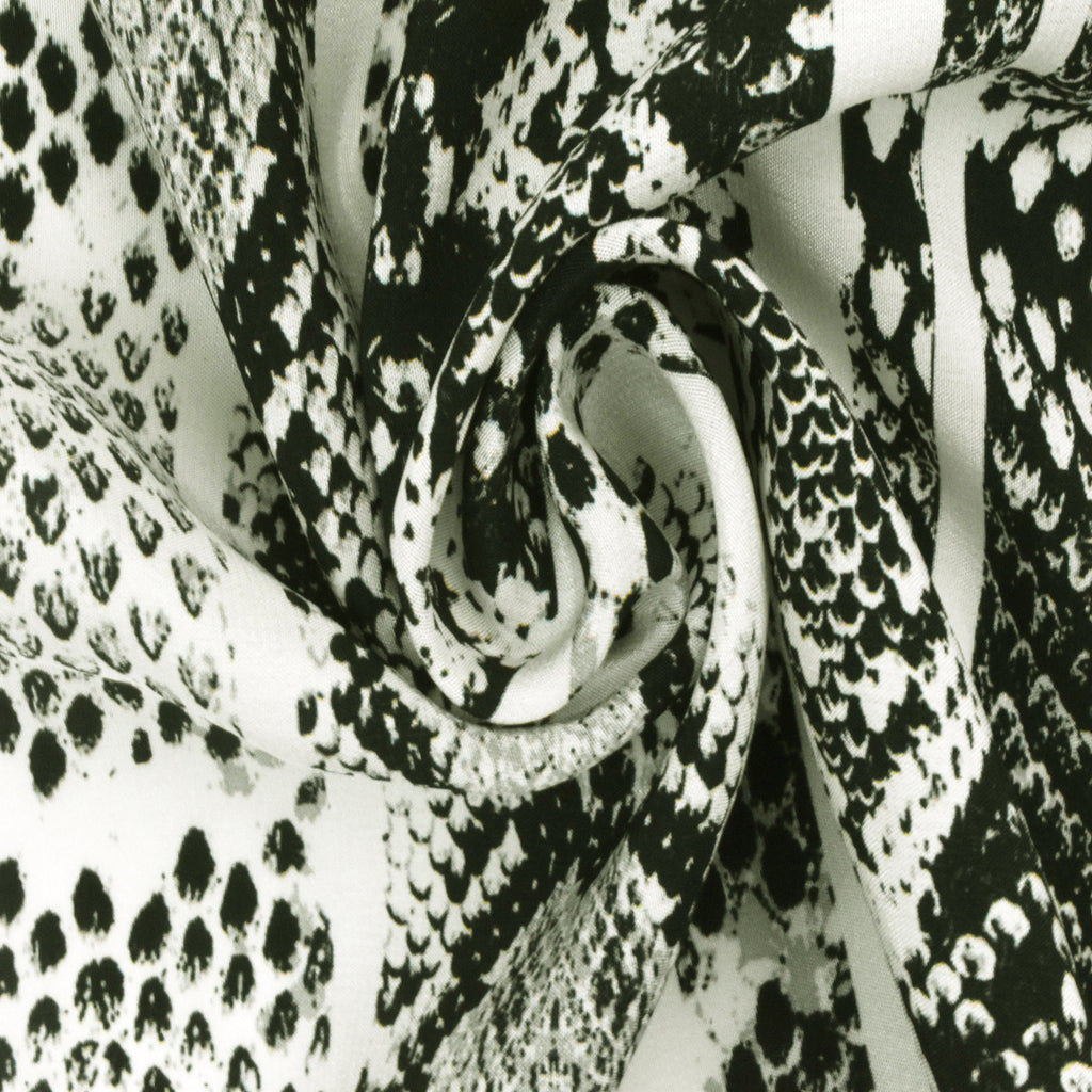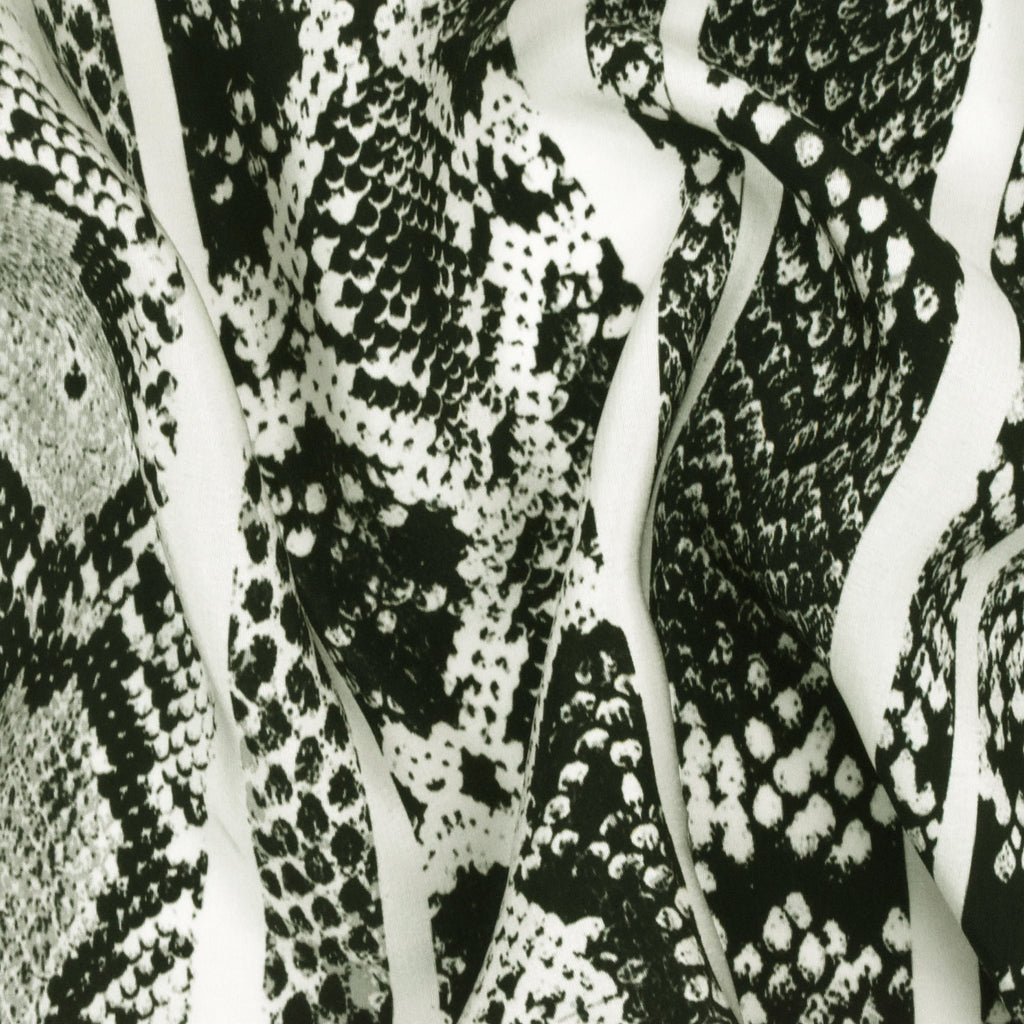 Black-Gray-Ivory Snake Striped Printed Silk Crepe De Chine Fabric