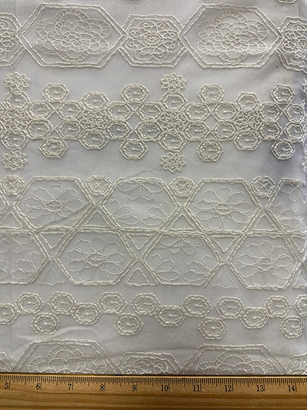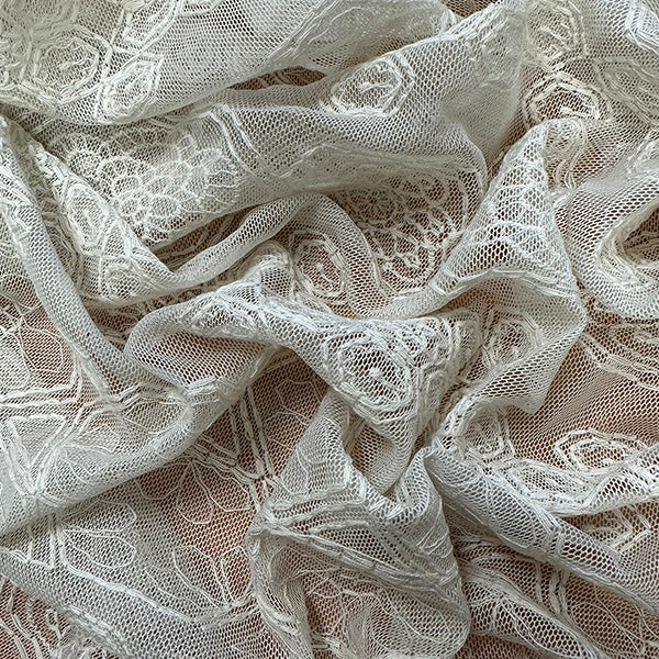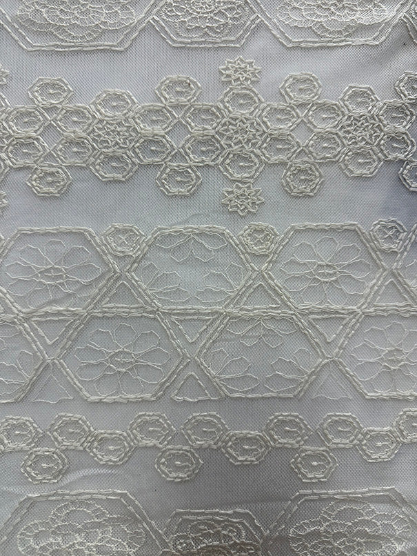 -Solid Eggshell Embroidered Mesh Lace Fabric