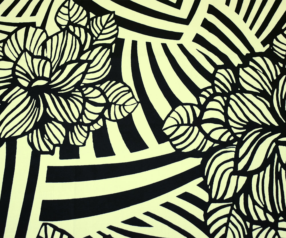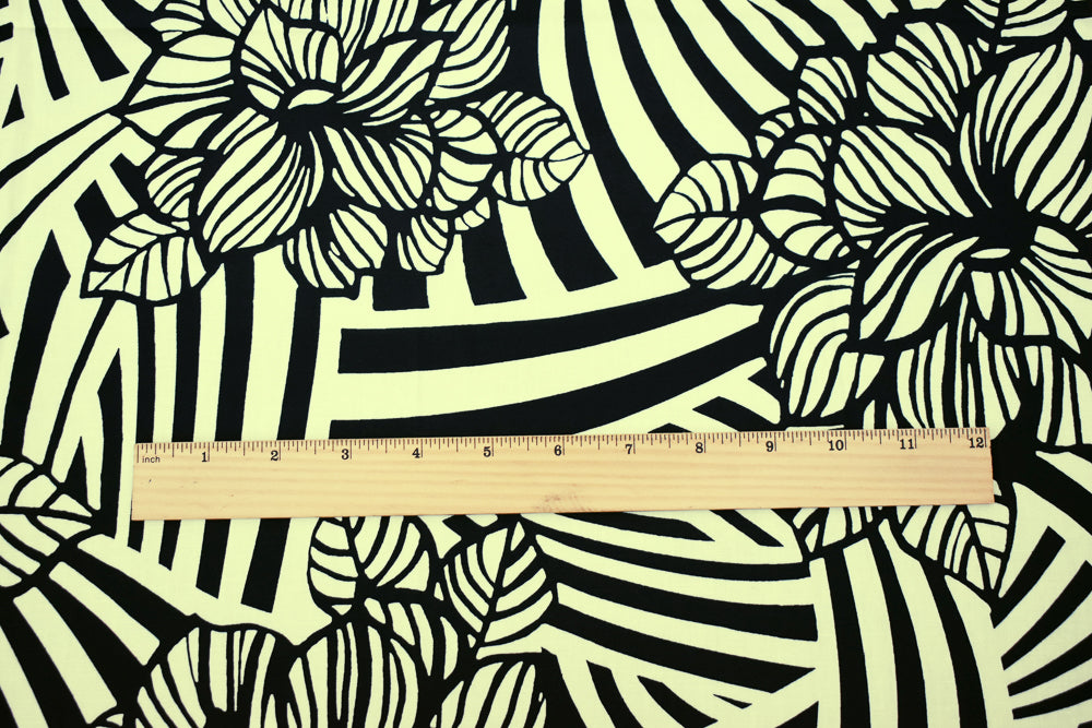 Ivory-Black Abstract Floral Printed Stretch Cotton Poplin Woven Fabric