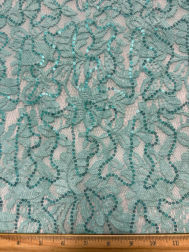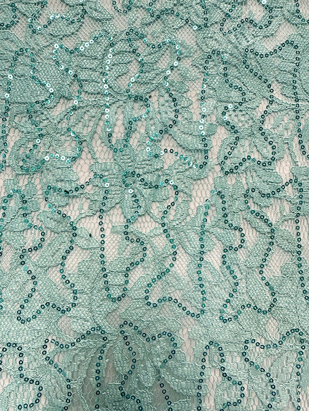-Solid Mint Green Embroidered Sequin Lace Fabric
