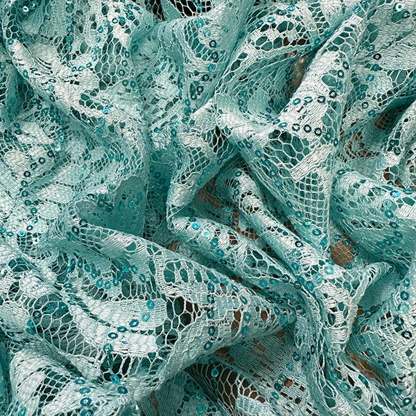 Mint Green Embroidered Sequin Lace Fabric