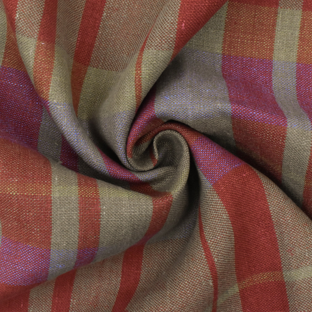 Rustic Red-Beige-Multi Cotton Woven Plaid Madras Fabric