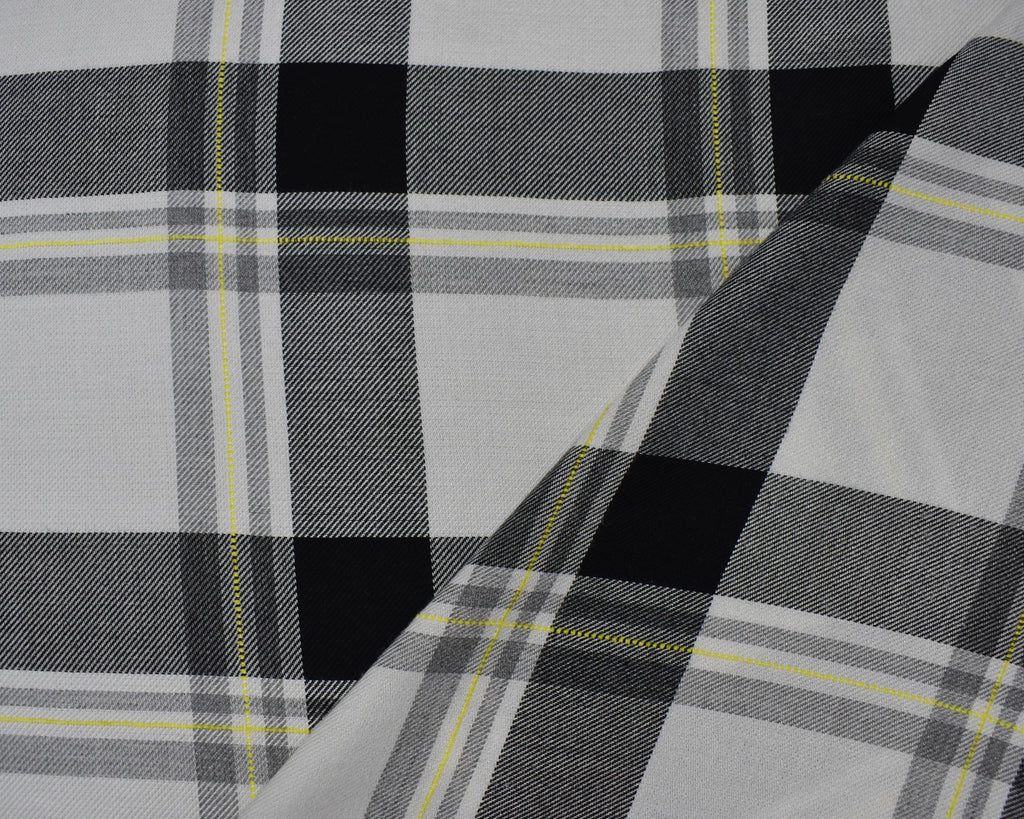Black-White-Multi Cotton-Rayon Famous Maker Plaid Twill Woven Fabric