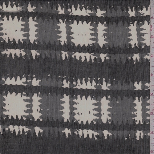 Ivory/Charcoal Ruffle Plaid Crinkled Silk Chiffon Fabric