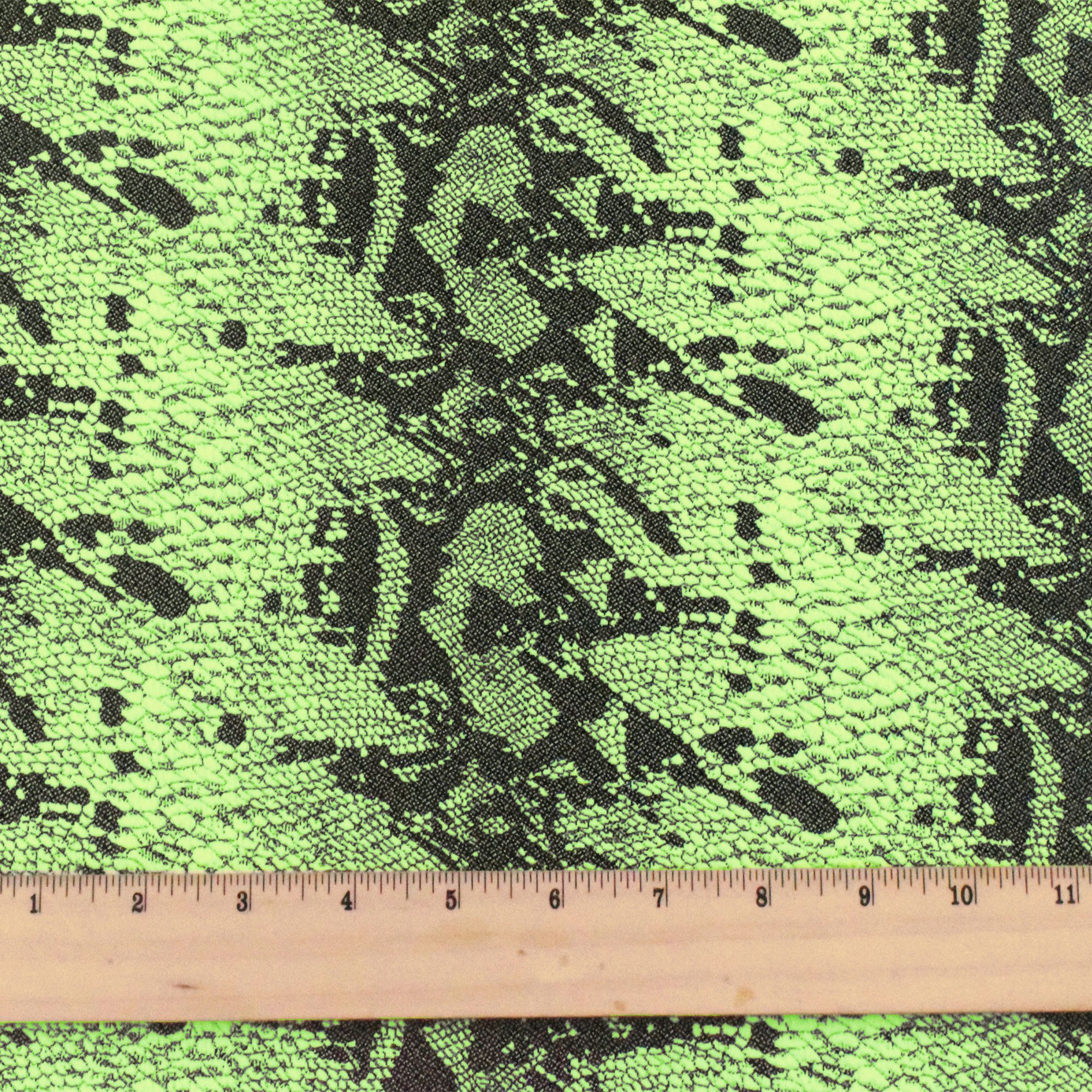 Neon Green-Black Famous Maker Stretch Reptile Jacquard Yoga Knit Fabric