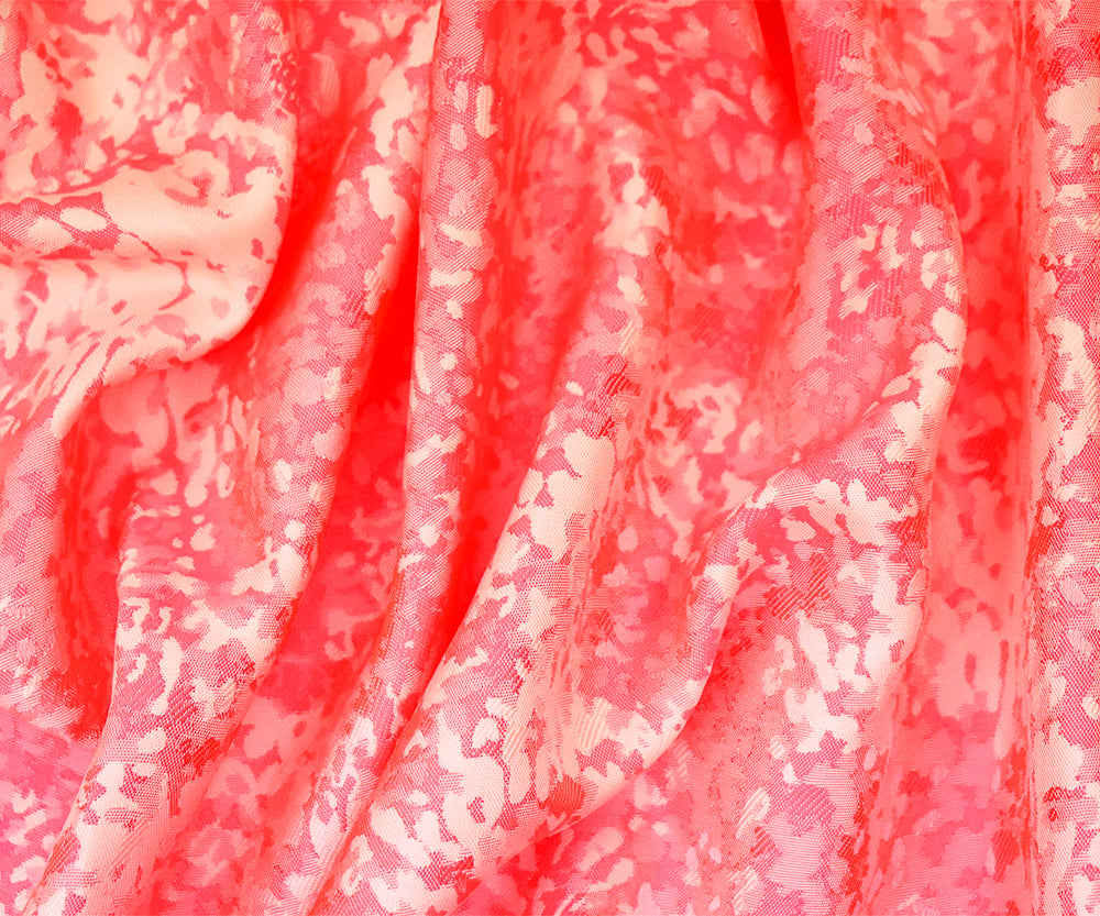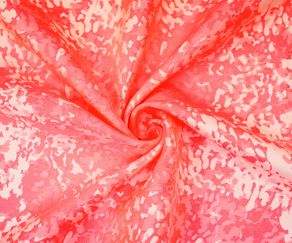 Neon Pink-Off White Polyester Abstract Camouflage Jacquard Woven Fabric