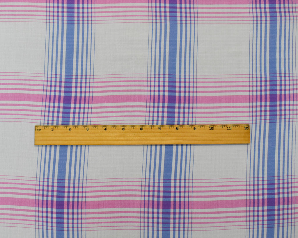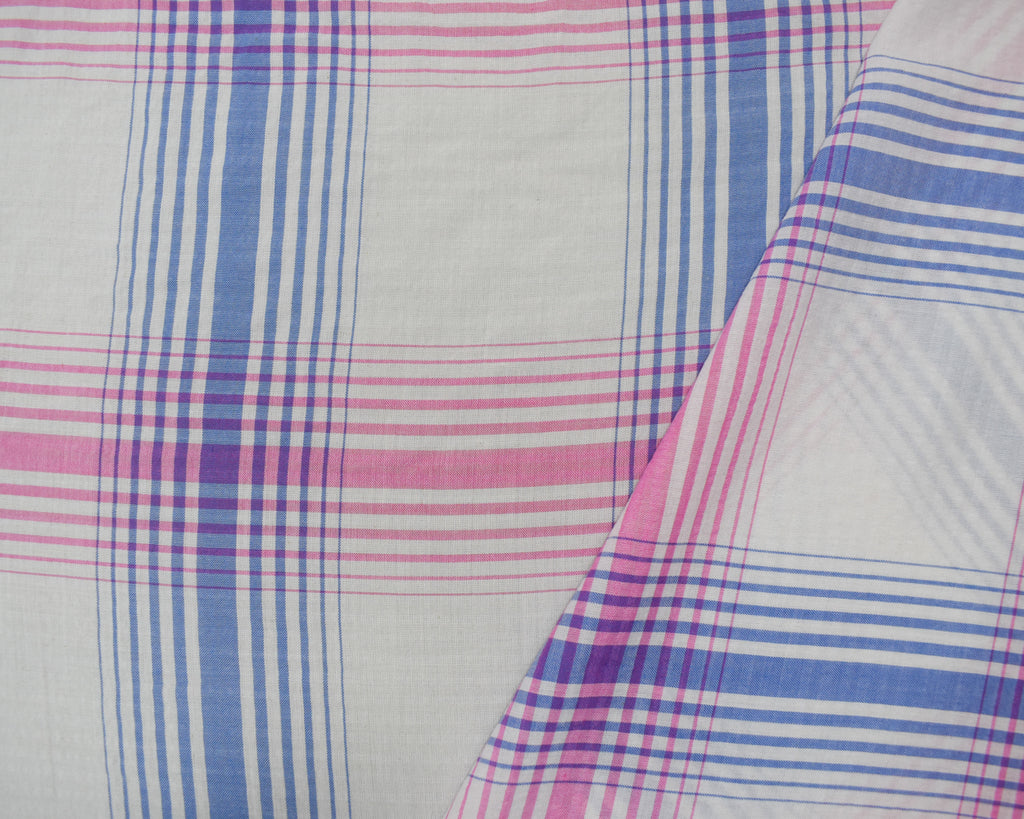 -Poly and rayon blend famous maker crinkled plisse woven fabric with yarn dyed plaid pattern
