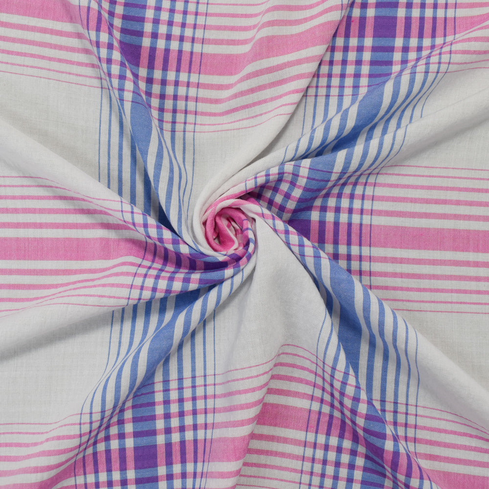 White-Blue-Pink Poly-Rayon Famous Maker Crinkled Plisse Woven Fabric