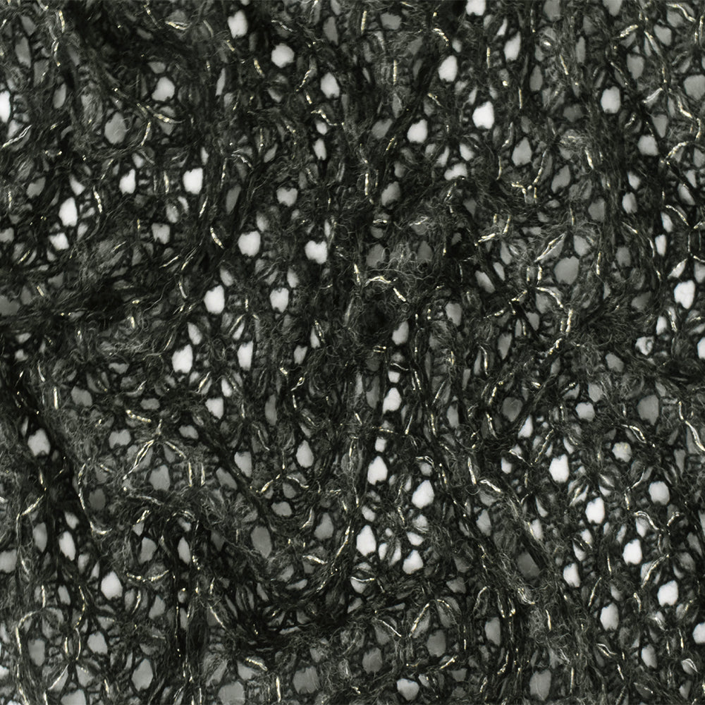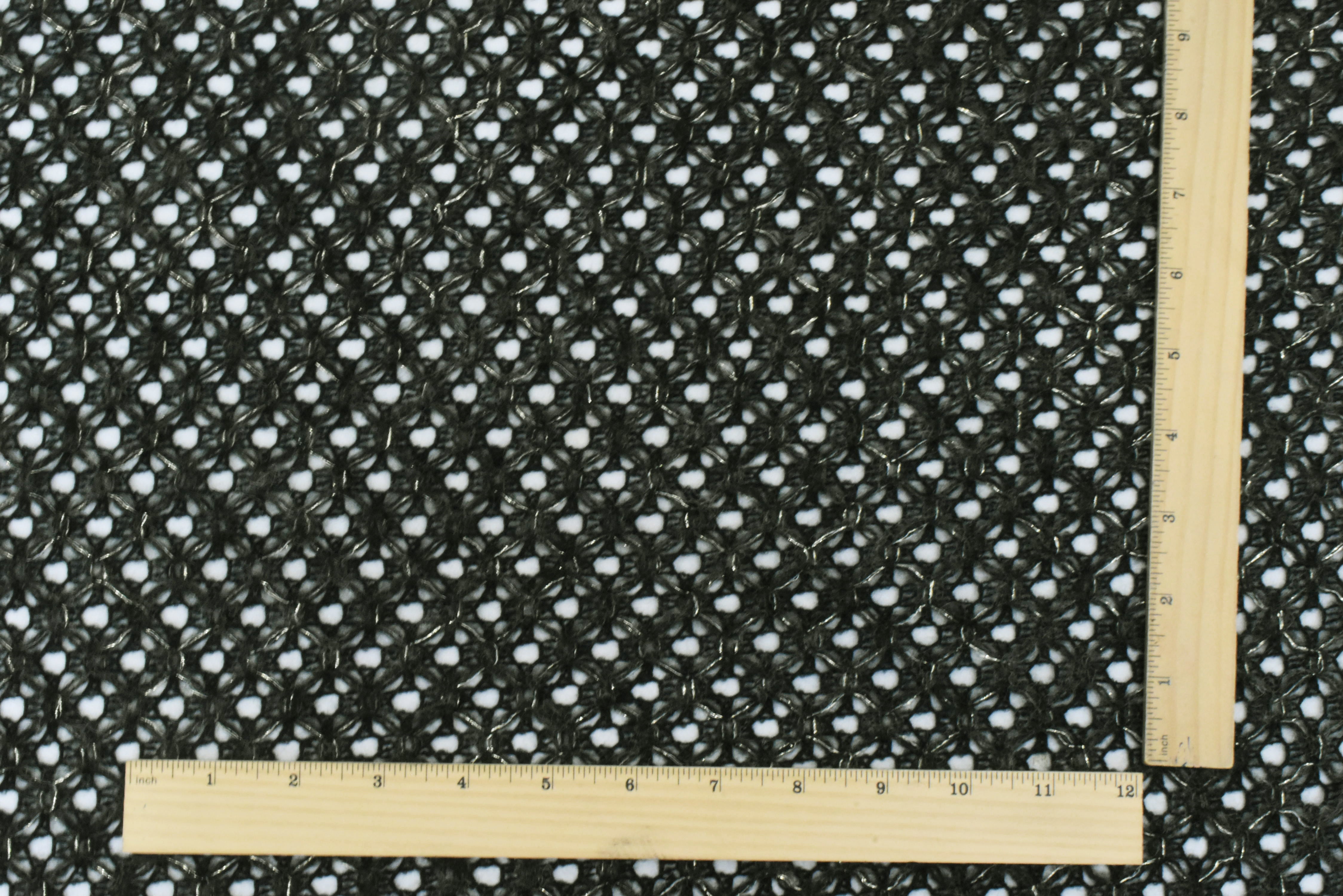 Black-Gold-Gray Diamond Net Wool Blend Crochet Knit Fabric