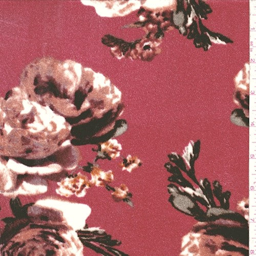 Cherry Pink/Multi Floral Printed Stretch Velvet Knit Fabric