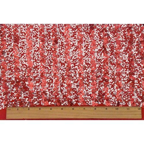 Red/Silver Stripe Sequined Mesh Fabric