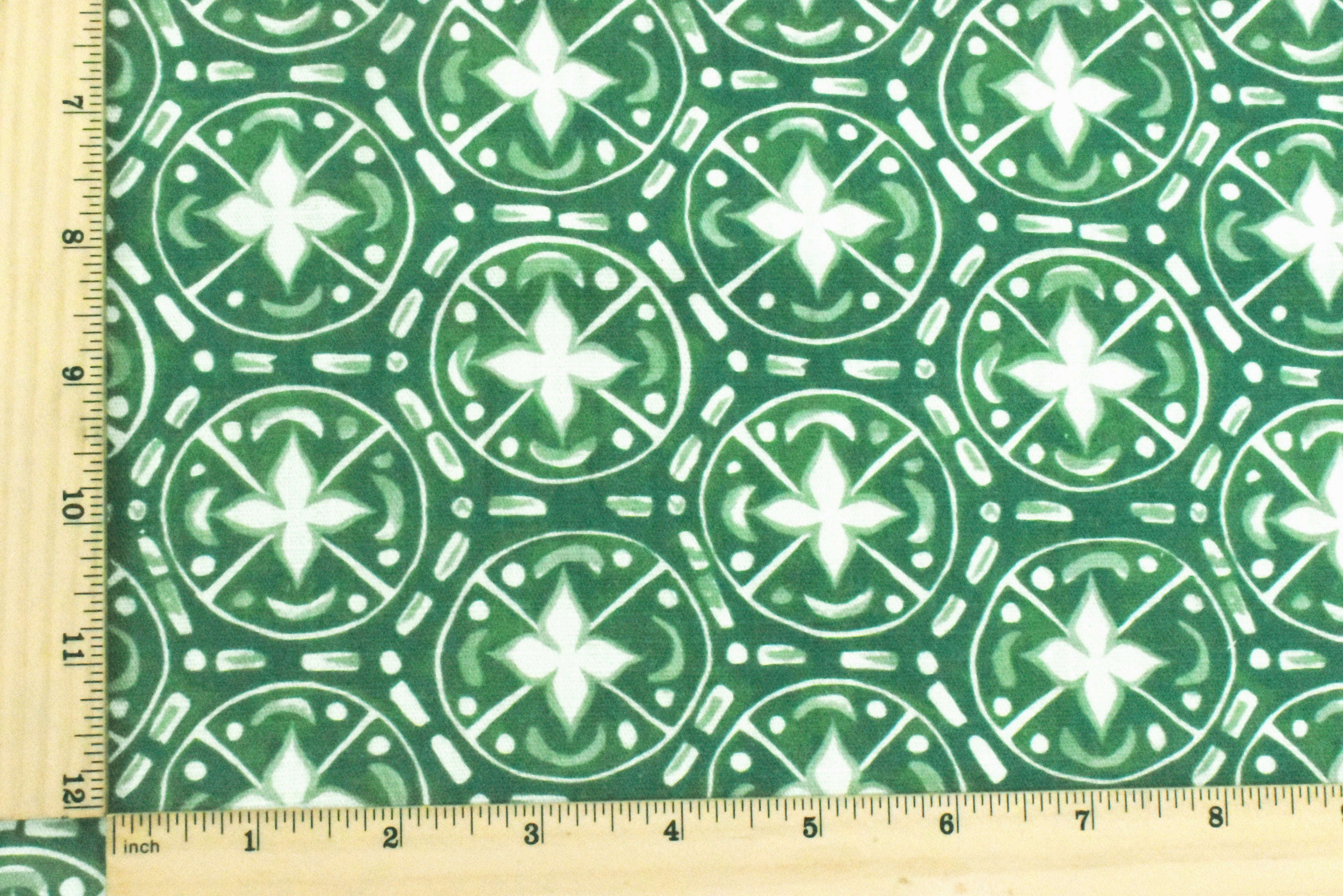 Grass Green-Ivory Abstract Tile Printed Slub Home Decorating Fabric