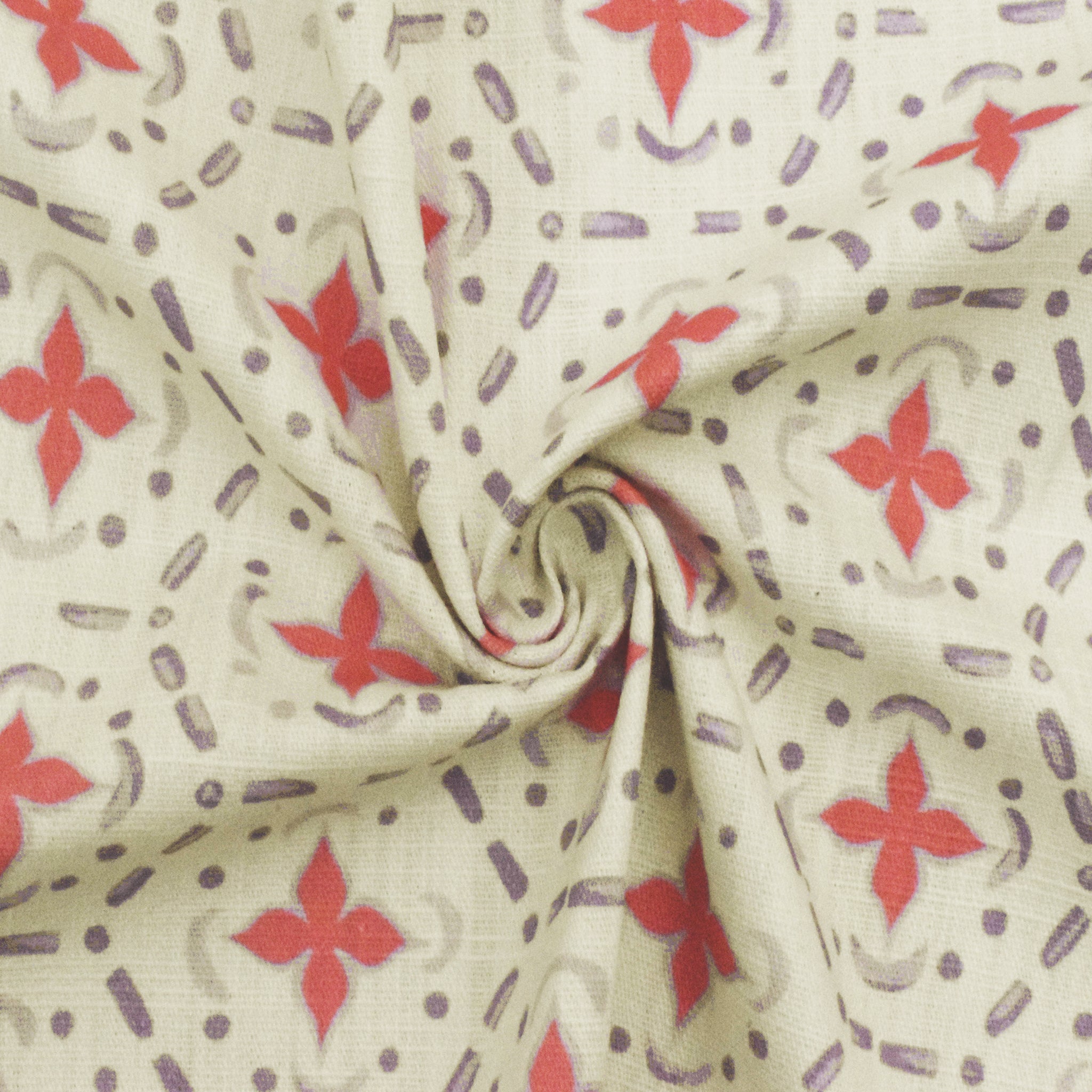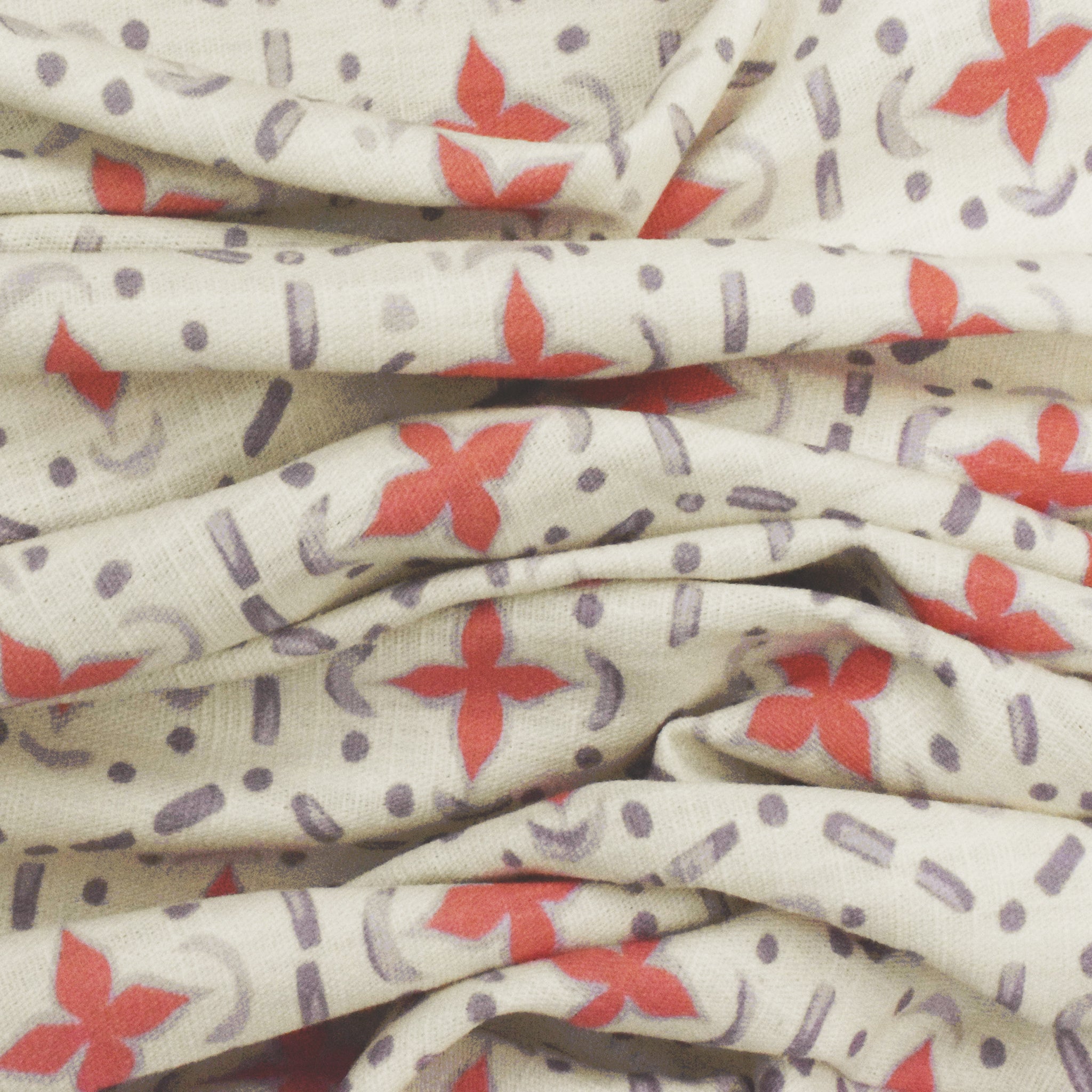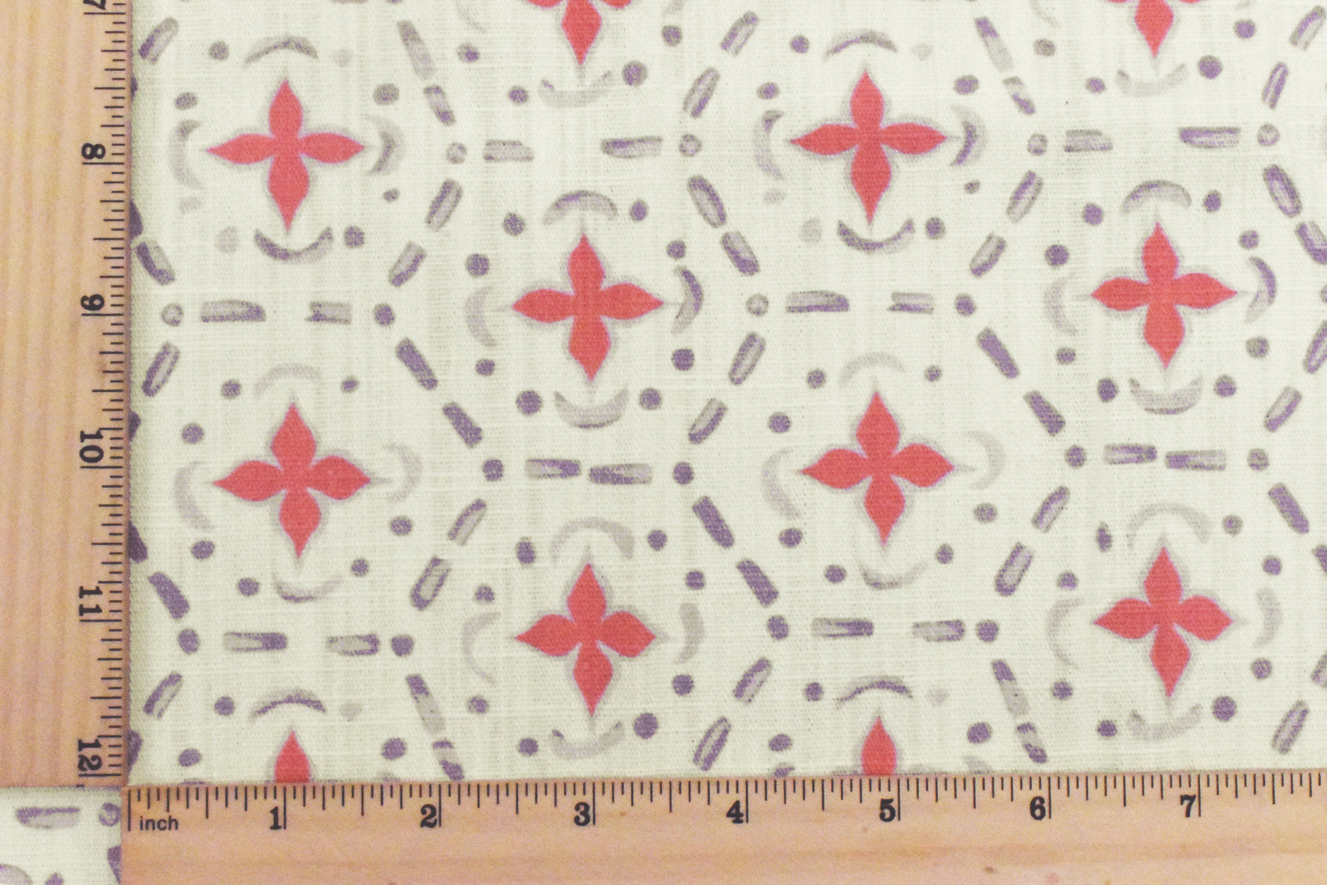 Purple-Cora-ivory Abstract Tile Printed Slub Home Decorating Fabric
