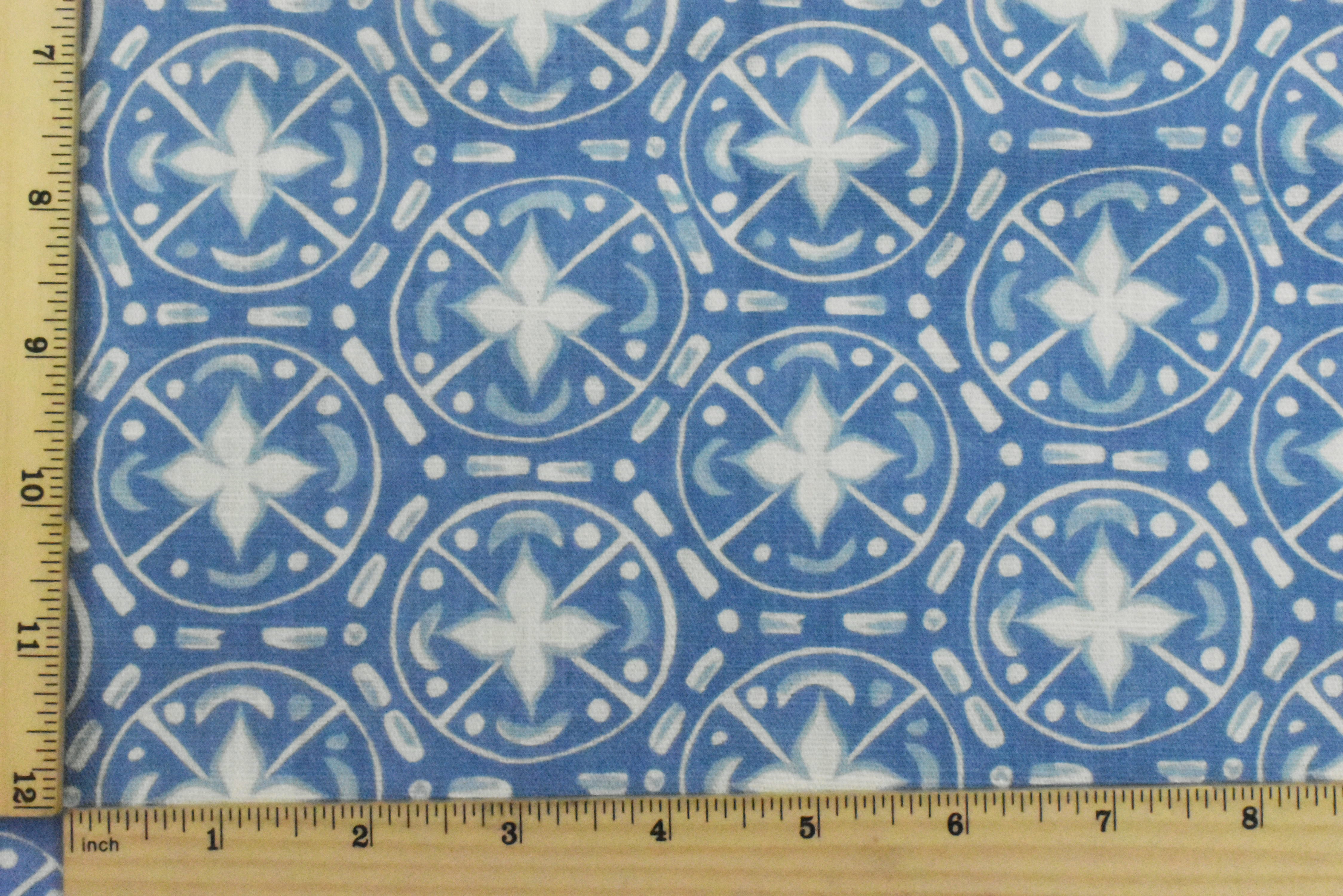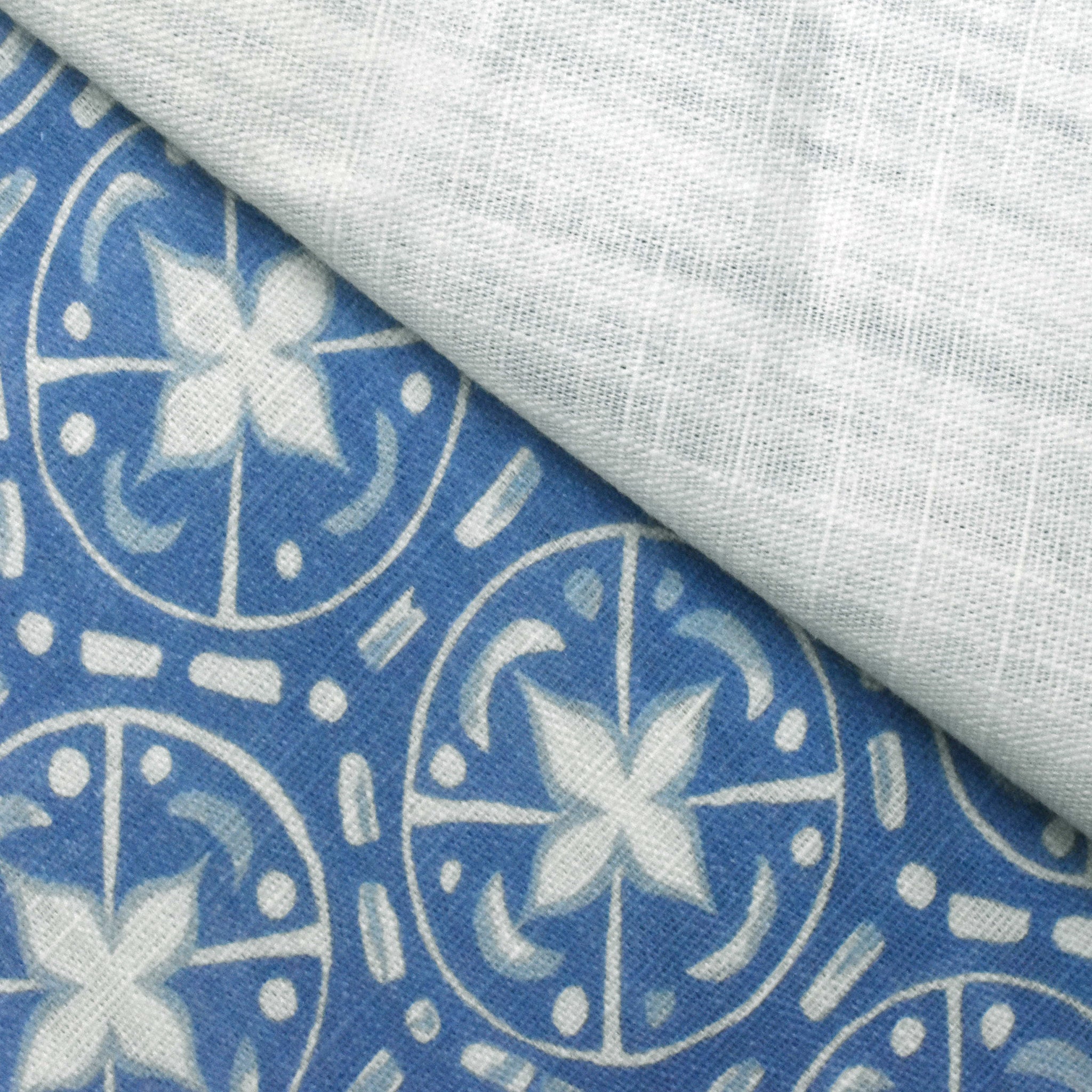Winter Blue-Ivory Abstract Tile Printed Slub Home Decorating Fabric