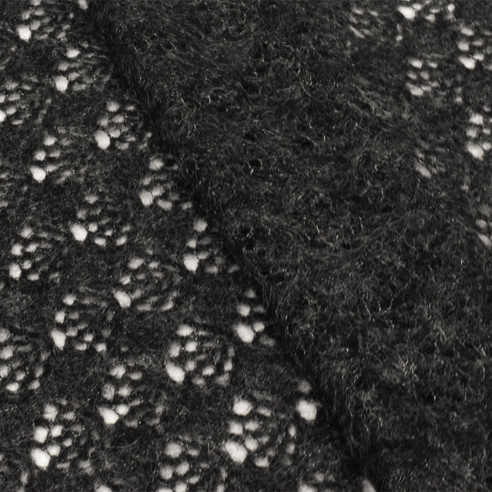 Ash Gray-Black Texture Polyester Wool Raschel Crochet Knit Fabric