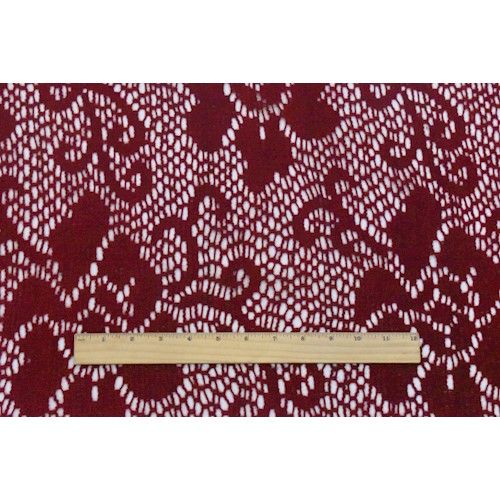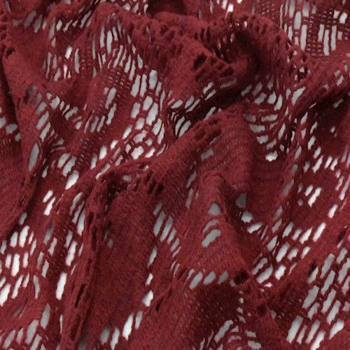 Berry Red Wool Blend Crochet Floral Sweater Knit Fabric