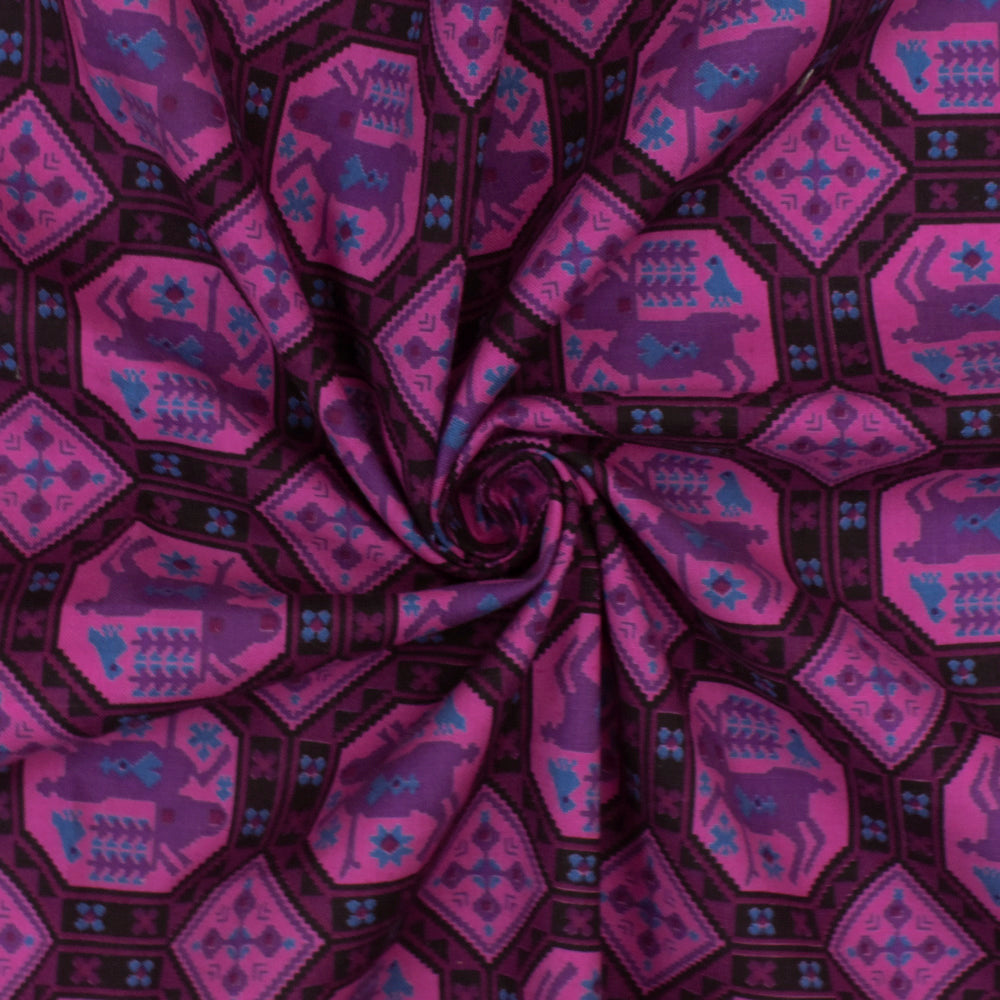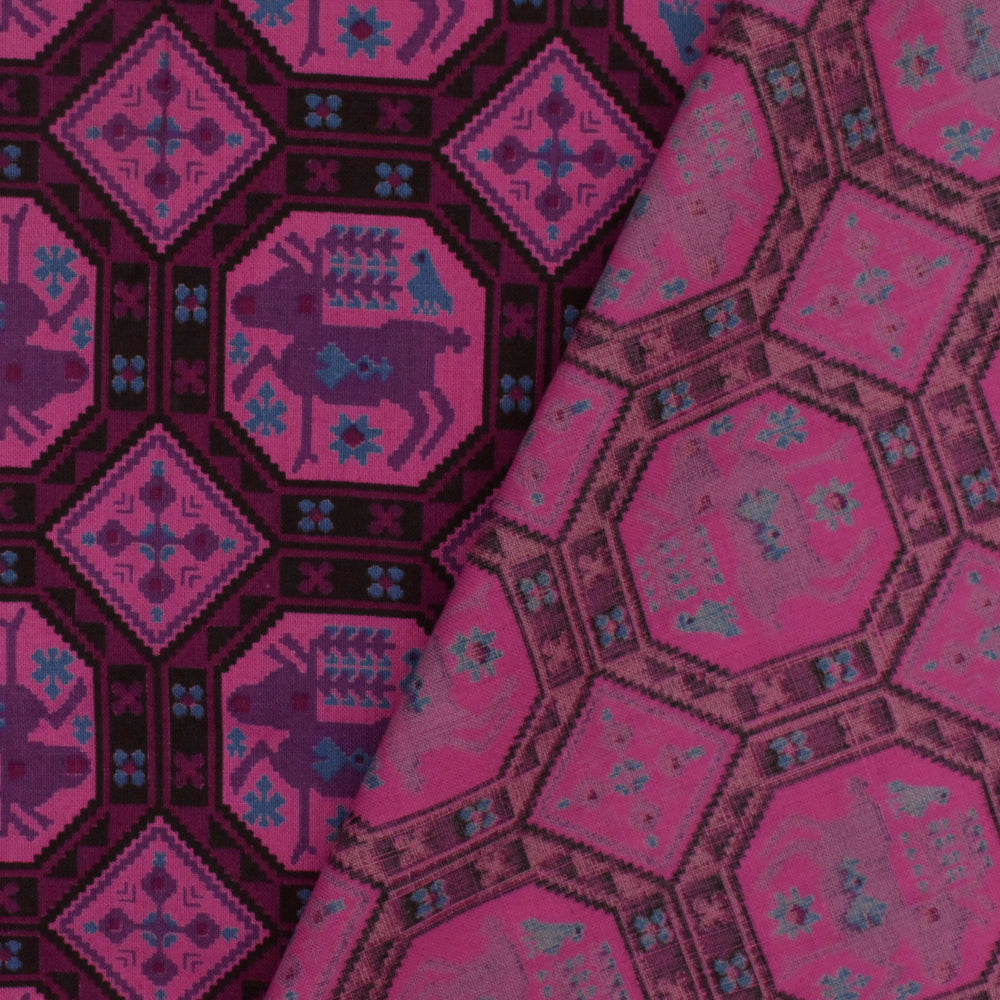 Plum/Pink/Multi Vintage 1950s Reindeer Print Shirting Fabric