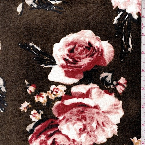 Autumn Brown/Multi Floral Printed Stretch Velvet Knit Fabric