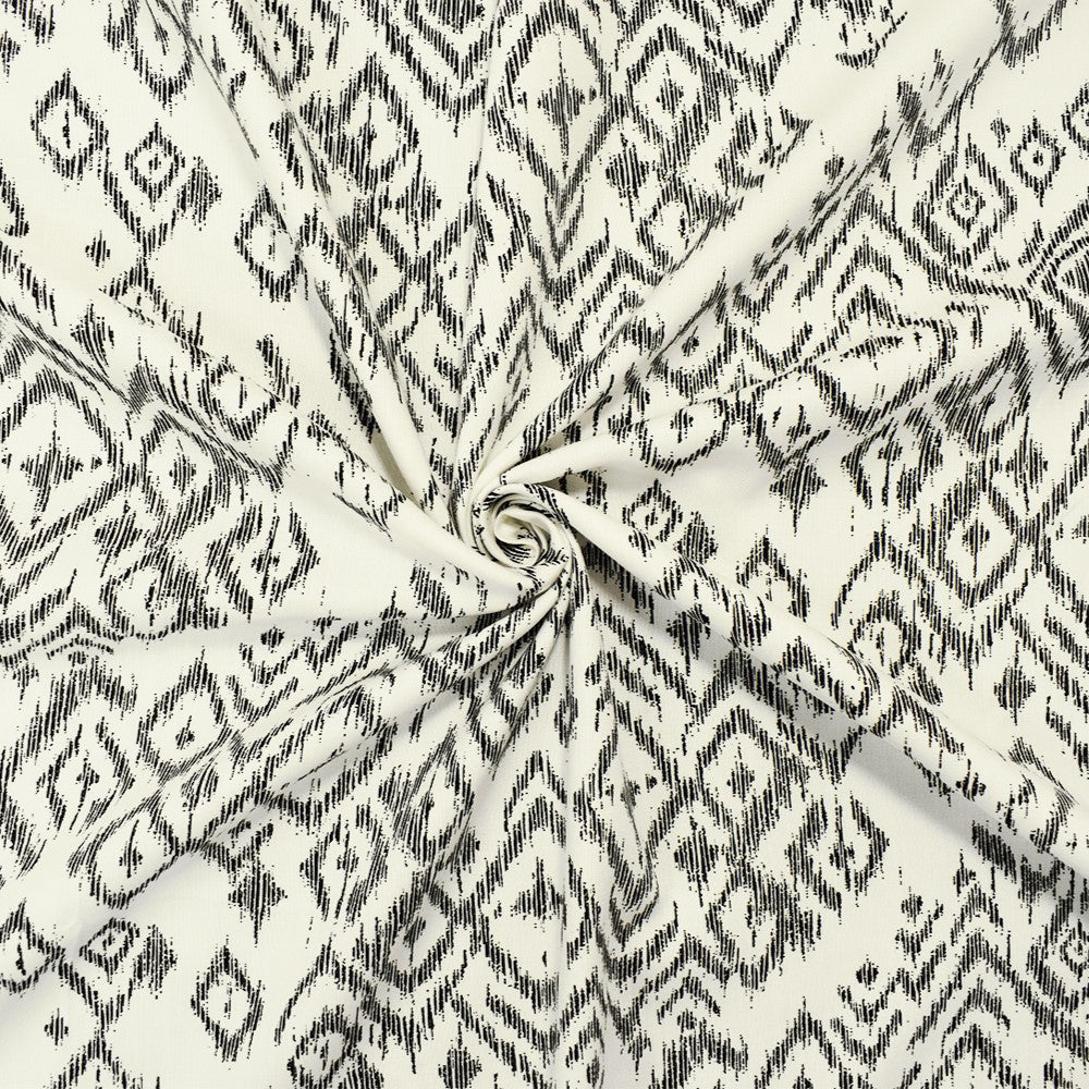 Black-White Cotton-Rayon Famous Maker Ikat Printed Woven Shirting Fabric