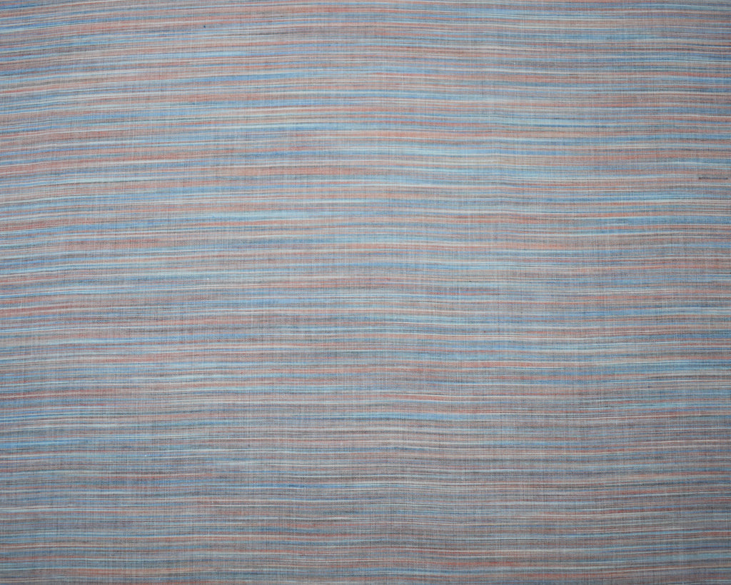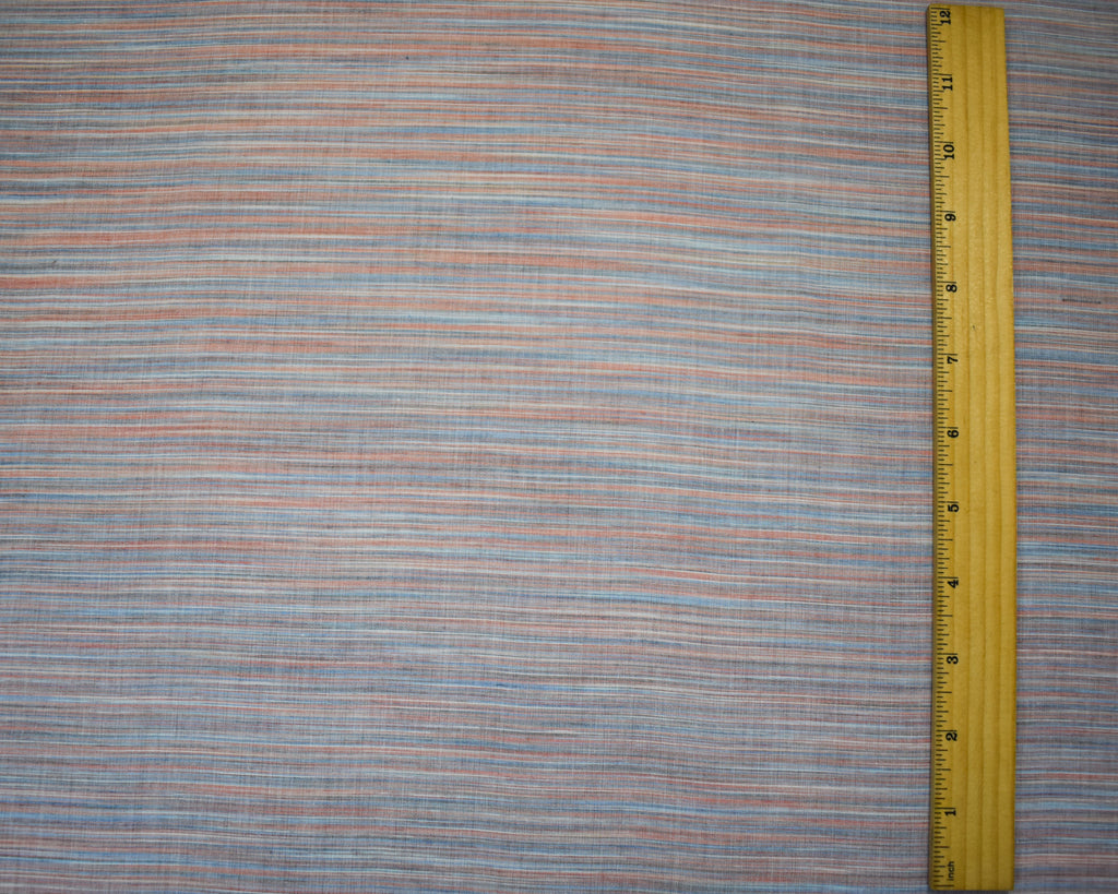 Blue-Orange-Multi Cotton Famous Maker Slub Horizontal Stripe Woven Fabric