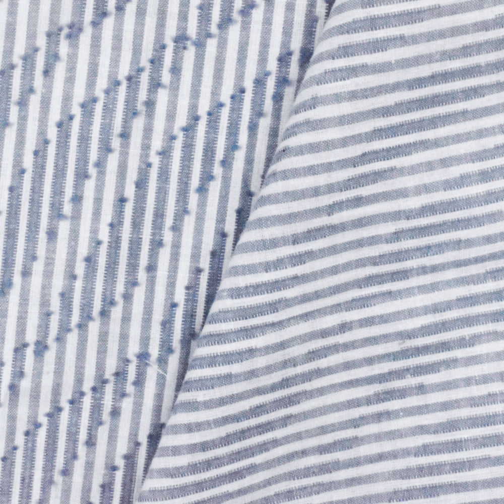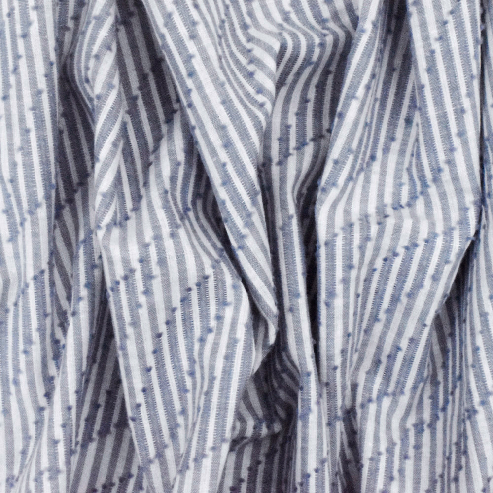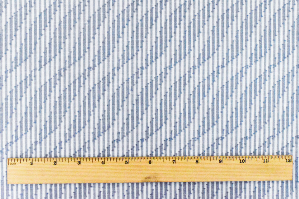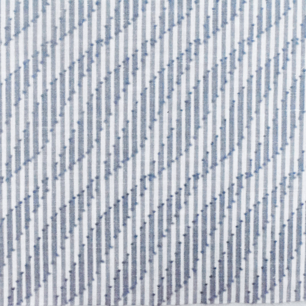 Dusty Blue-White Wave Jacquard Stripe Cotton Shirting Fabric
