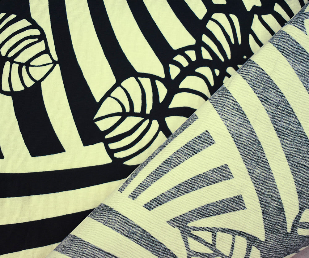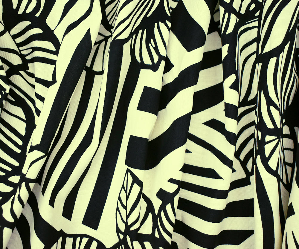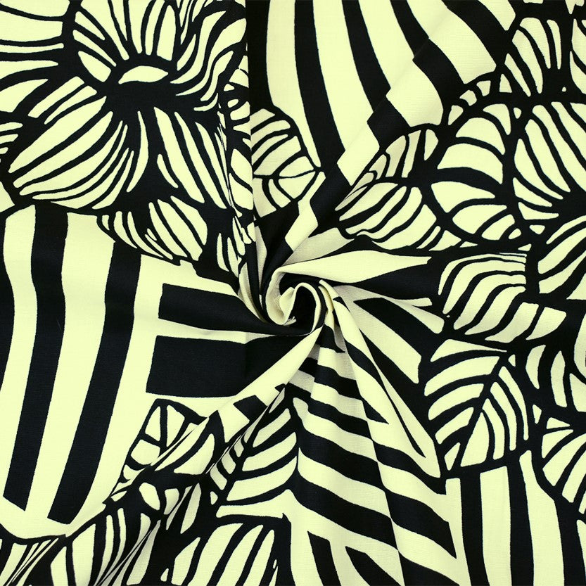 Ivory-Black Abstract Floral Printed Stretch Cotton Poplin Woven Fabric