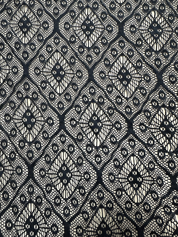 Navy Blue Embroidered Diamond Stretch Lace Fabric