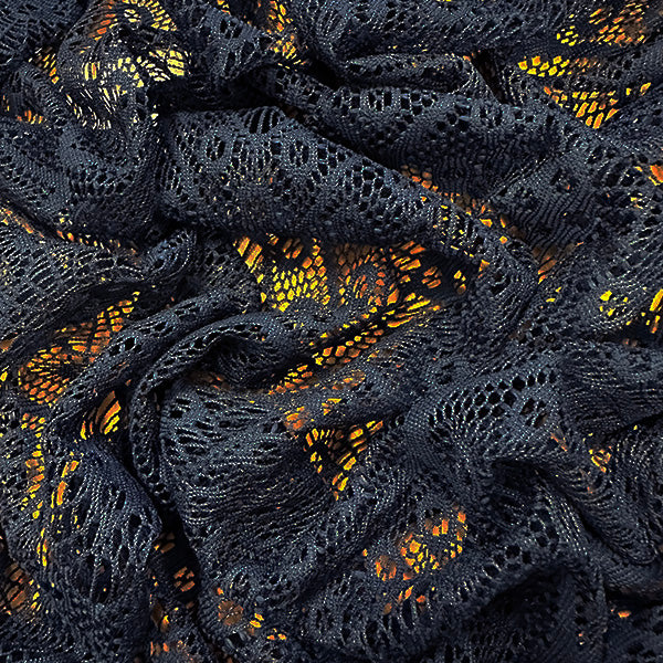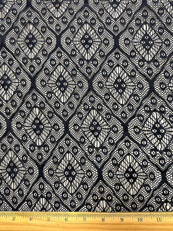 -Solid Navy Blue Embroidered Diamond Stretch Lace Fabric