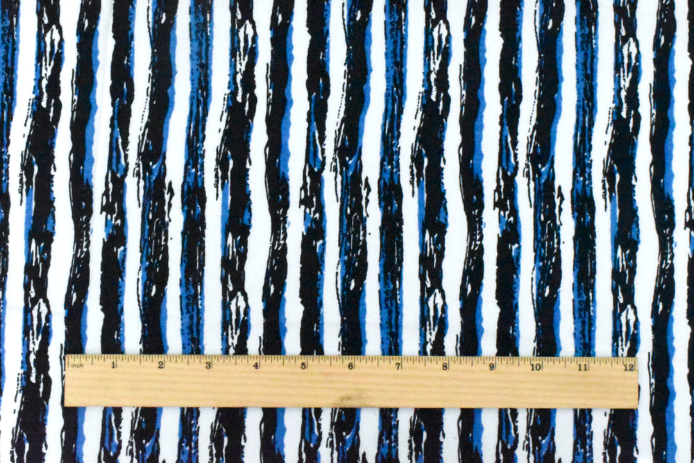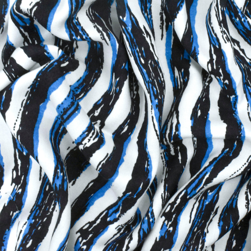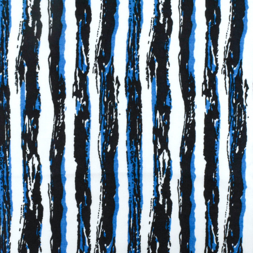 Night Blue-White-Blue Painting Stripe Printed Rayon Challis Woven Fabric