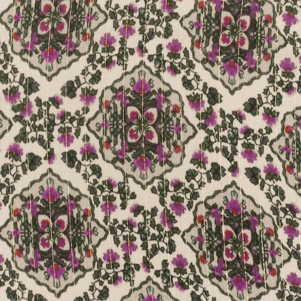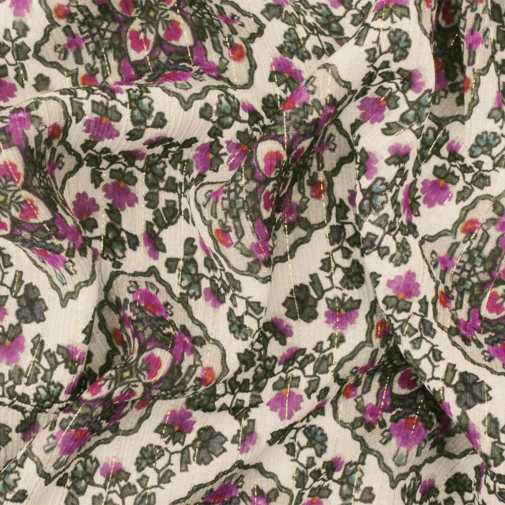 Purple-Multi Famous Designer Viscose Silk Printed Crinkled Chiffon Fabric