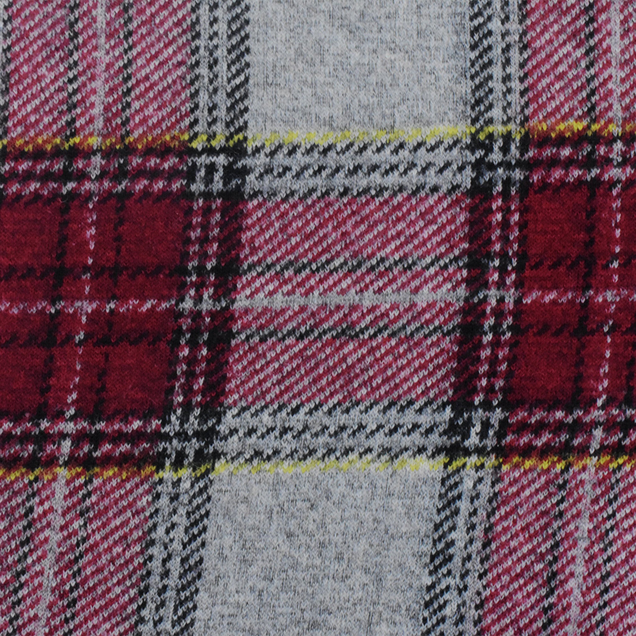 Red-Black-Multi Famous Designer Brushed Back Plaid Knit Jacketing Fabric