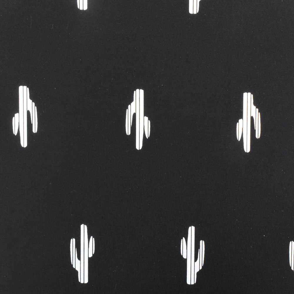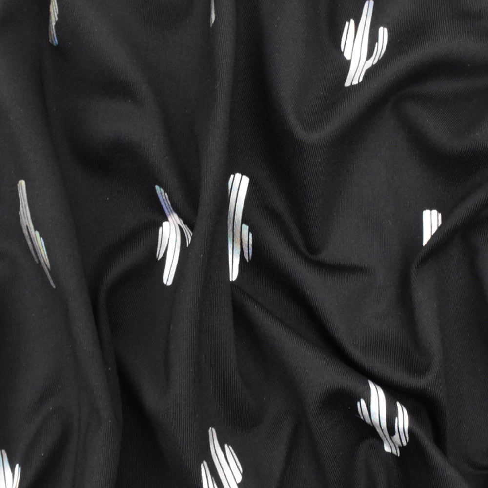 Black-Silver Famous Maker Cactus Print Stretch Tricot Swimwear Knit Fabric
