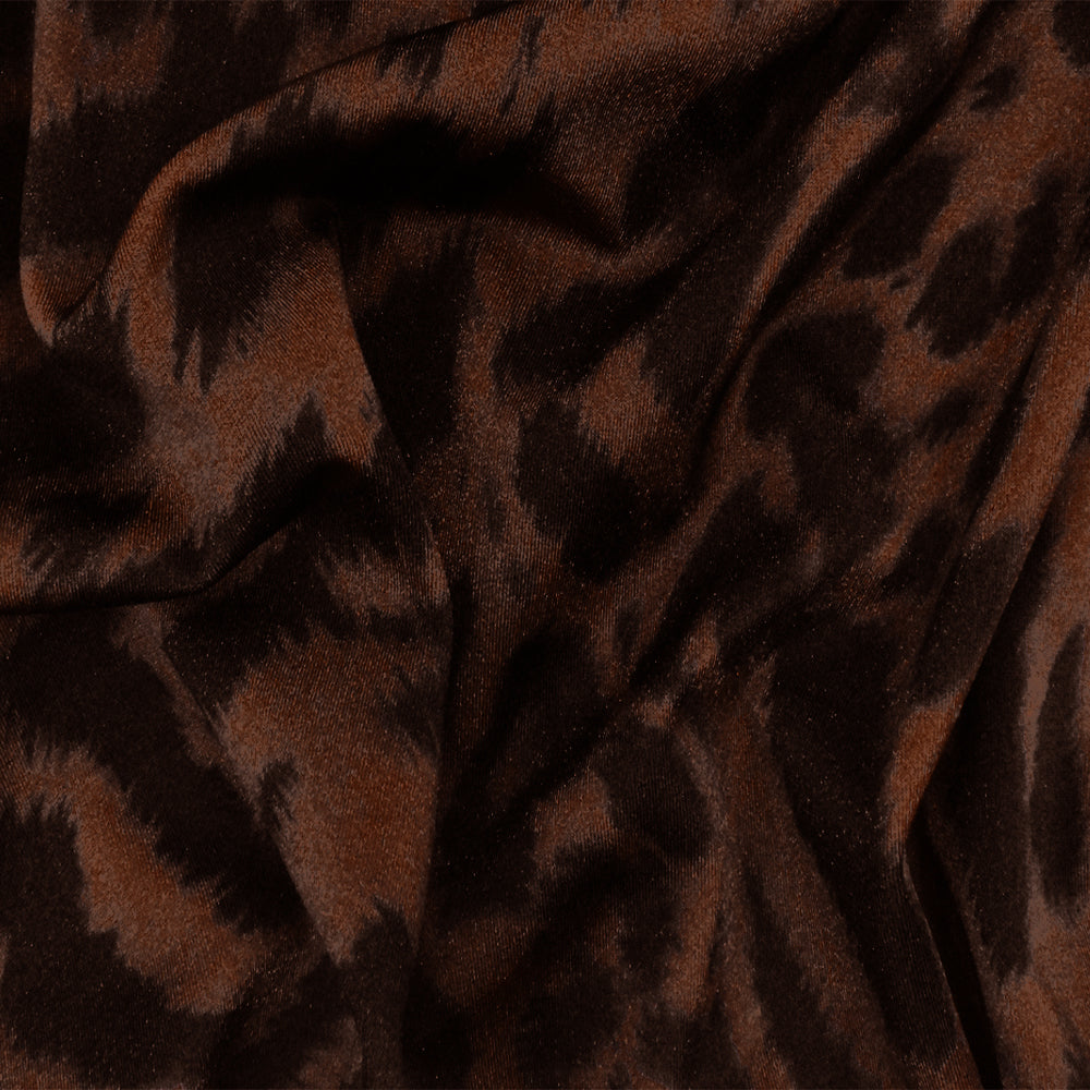 Earth Brown-Black-Multi Famous Maker Leopard Printed Tricot Swimwear Fabric