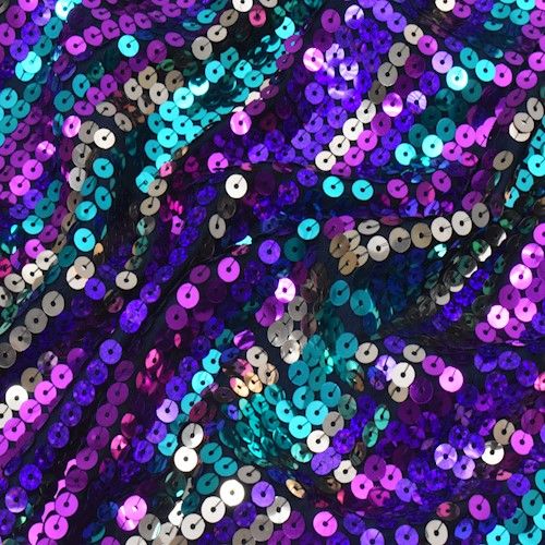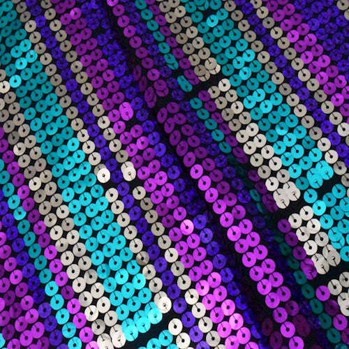 Black/Disco Multi Striped Sequined Mesh Knit Fabric