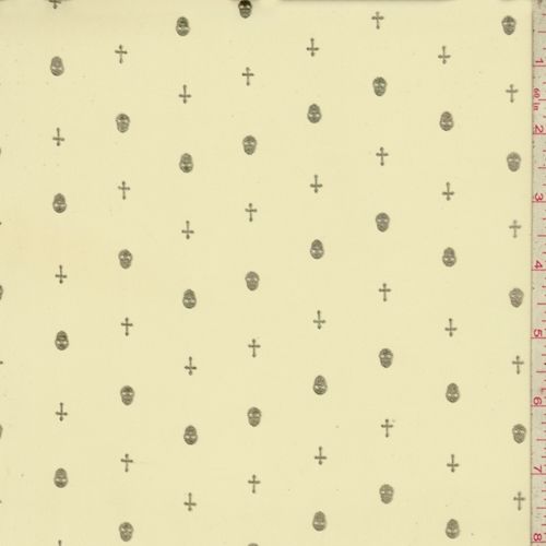 Cashew/Gold Mini Skull/Cross Georgette Fabric